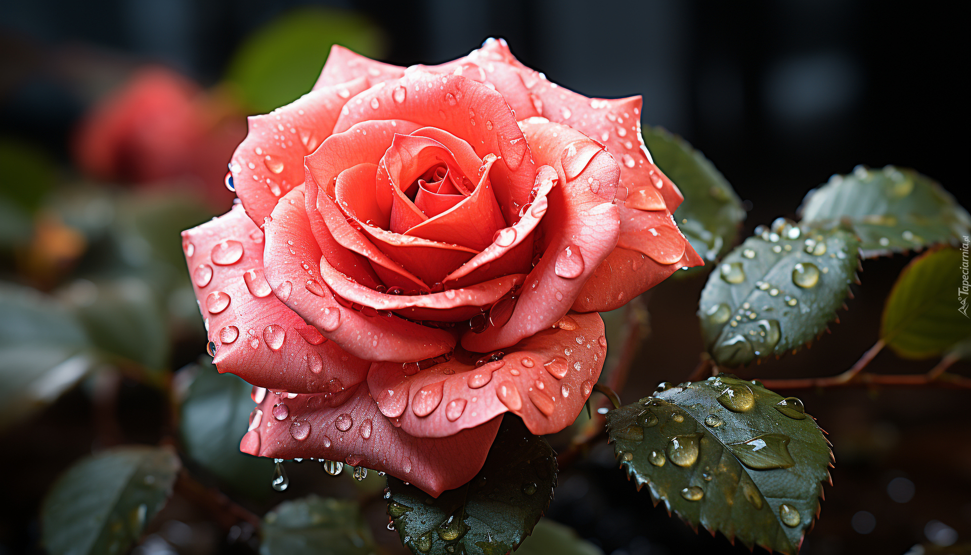 Edytor tapety: Różowa róża w kroplach wody