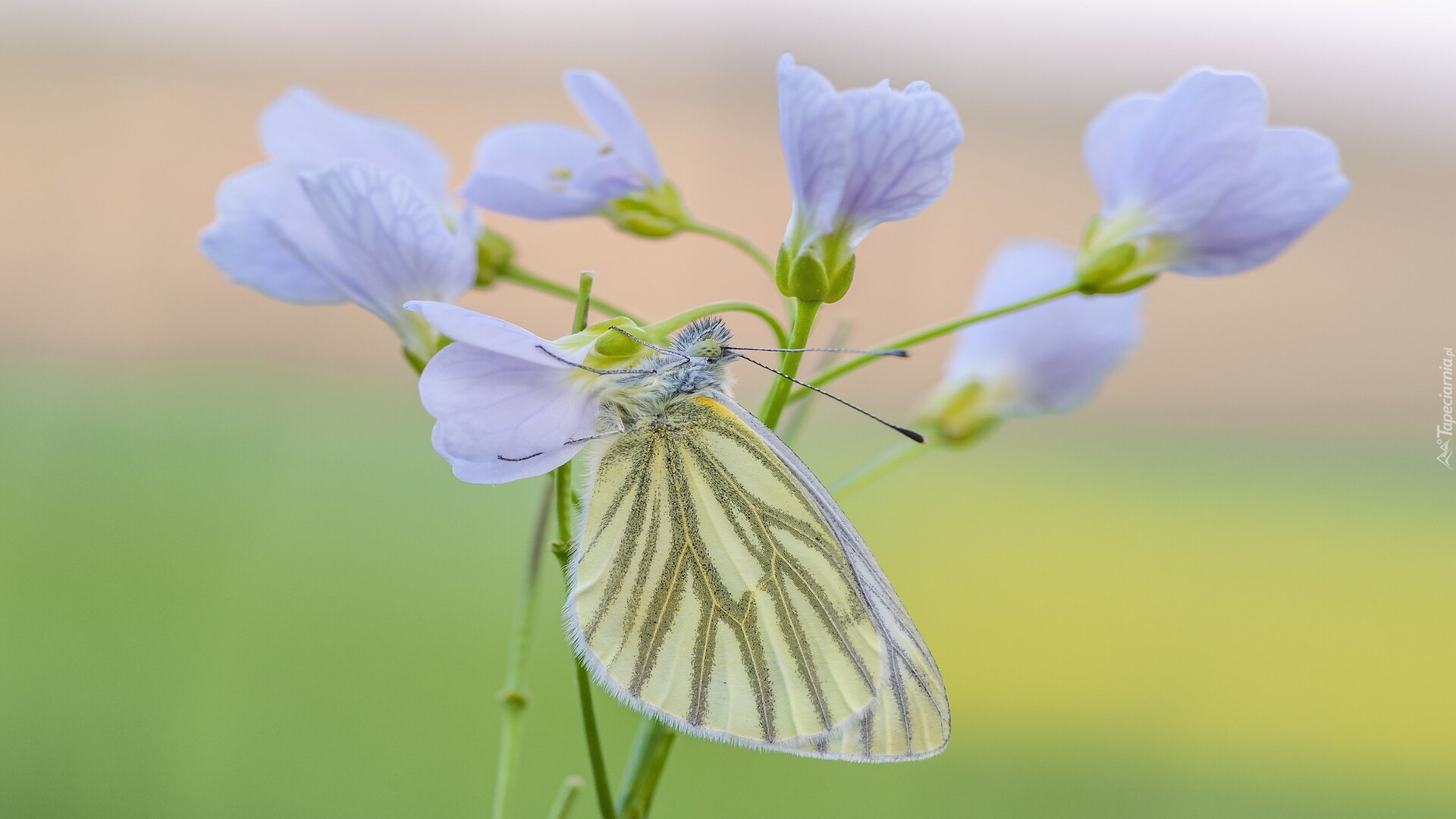 Edytor tapety: Bielinek bytomkowiec na liliowych kwiatkach