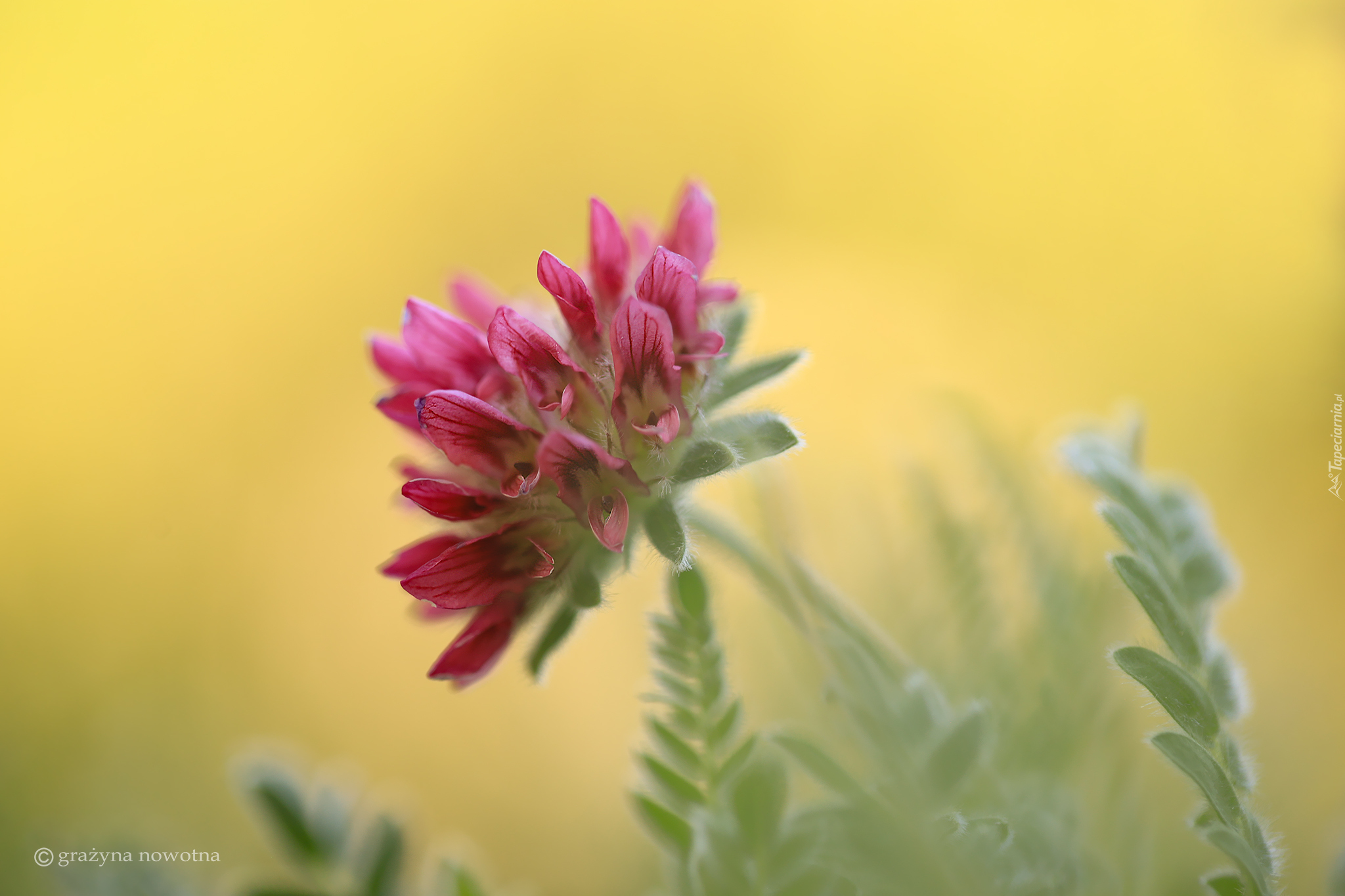Edytor tapety: Różowy kwiat i zielone drobne listki