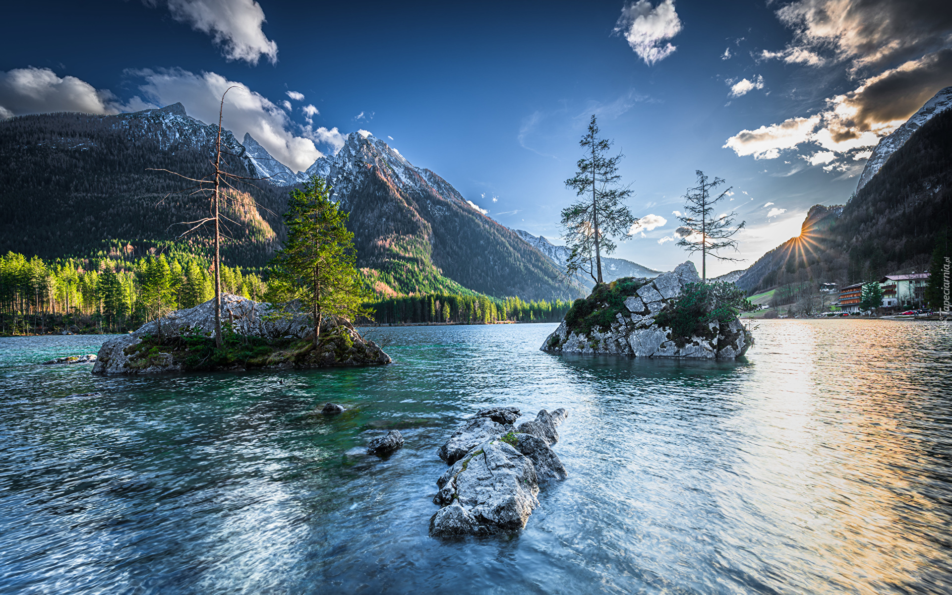 Edytor tapety: Wysepki na jeziorze Hintersee w Alpach Bawarskich