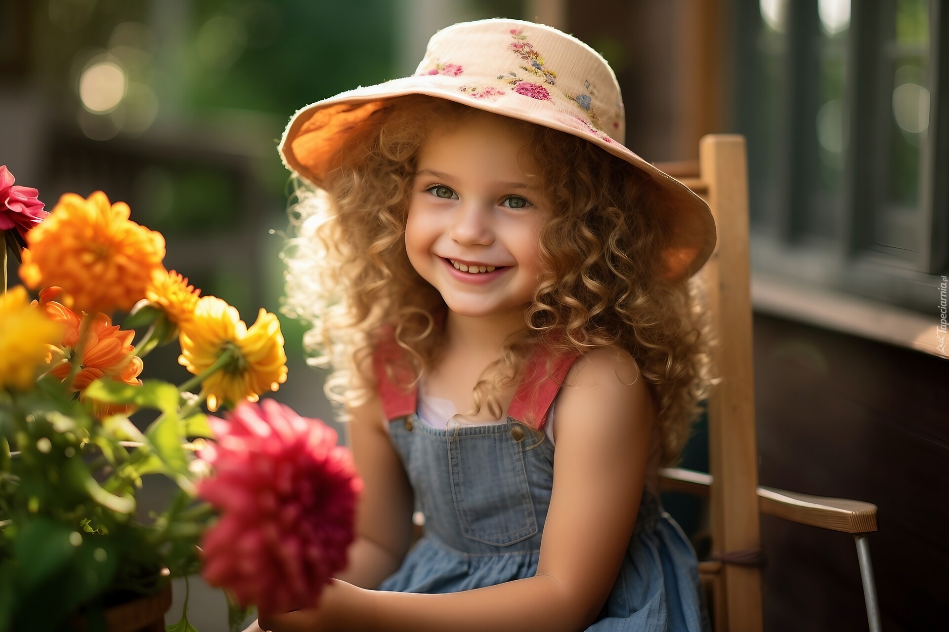Edytor tapety: Uśmiechnięta dziewczynka w słomkowym kapeluszu