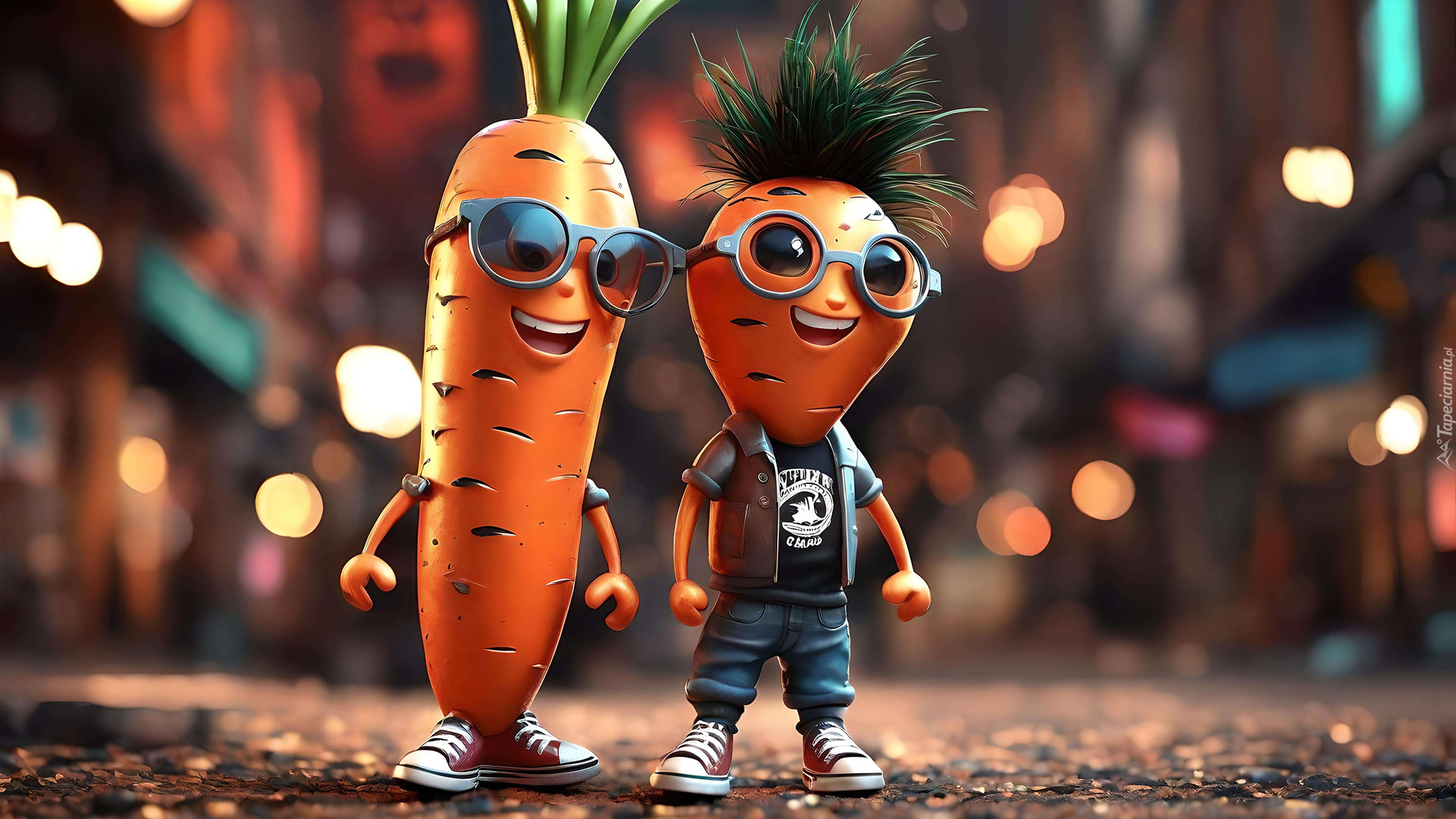Edytor tapety: Dwie uśmiechnięte marchewki w okularach