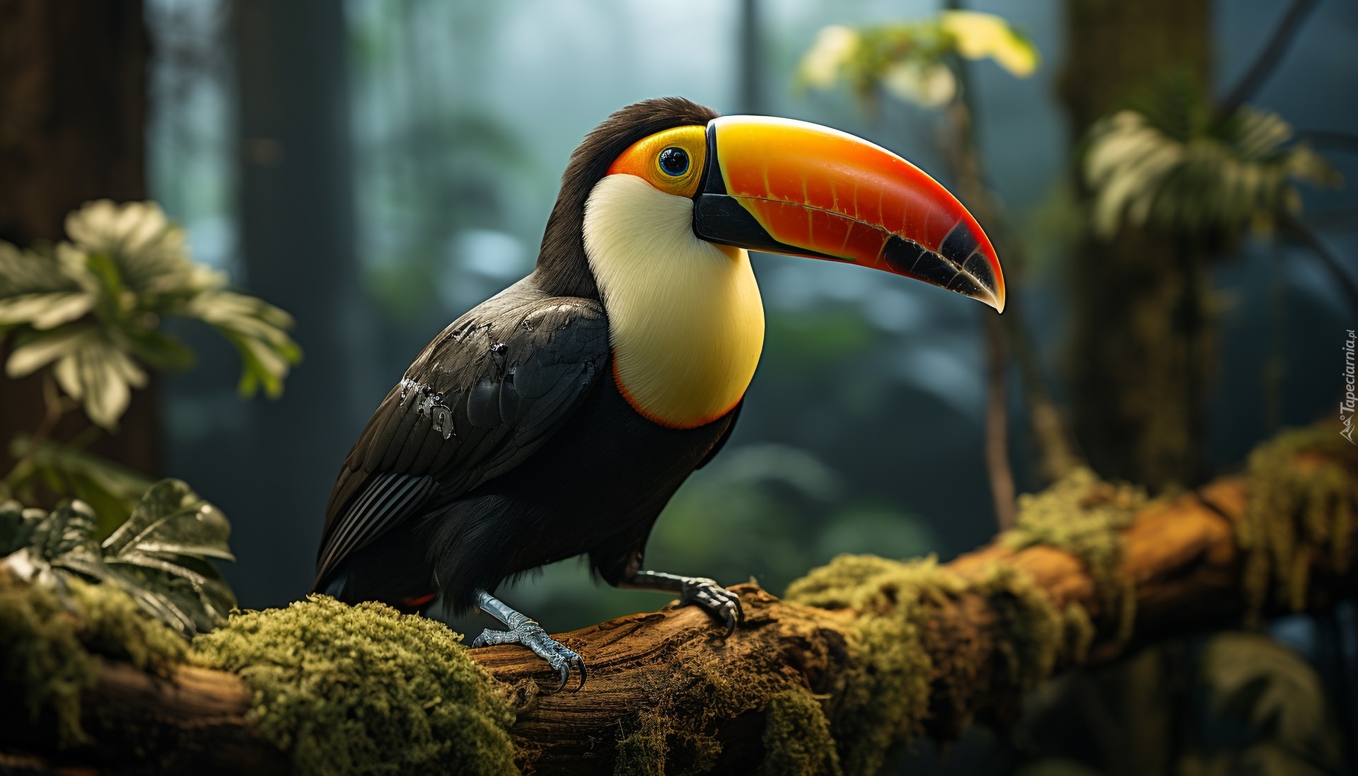 Edytor tapety: Tukan na omszałym konarze