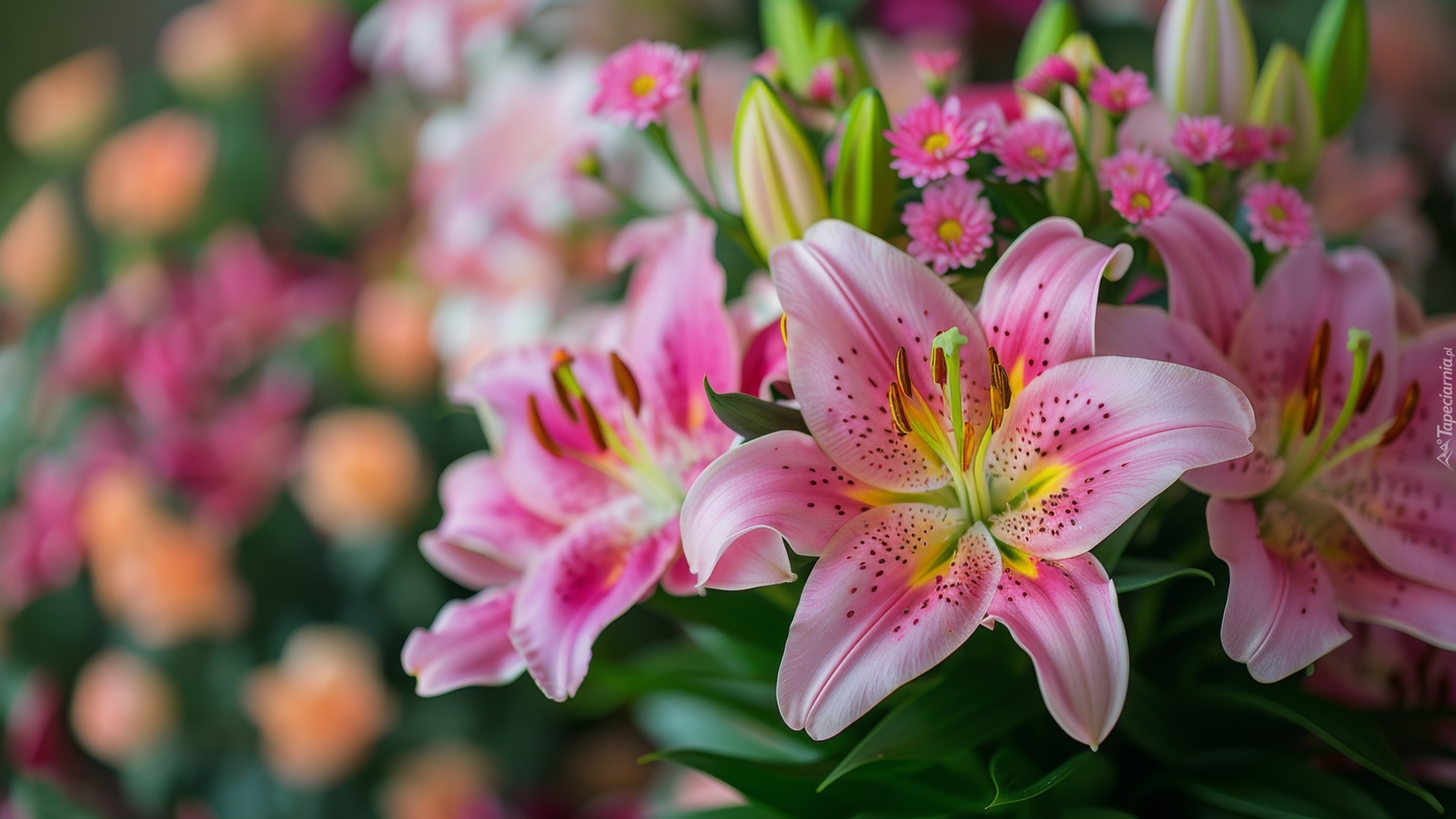 Edytor tapety: Różowe lilie na rozmytym tle