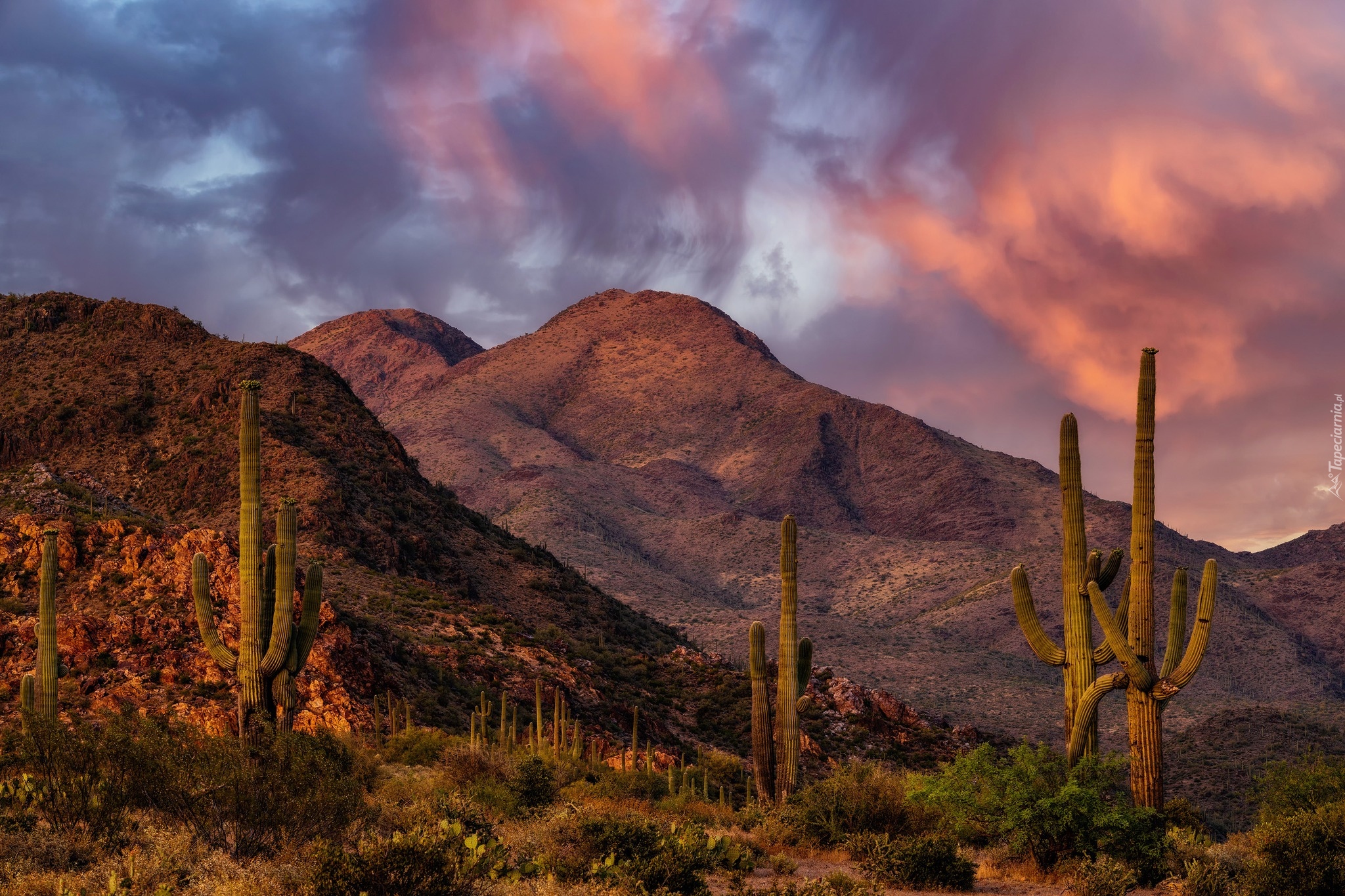 Edytor tapety: Kaktusy Saguaro na pustyni Sonora w Arizonie
