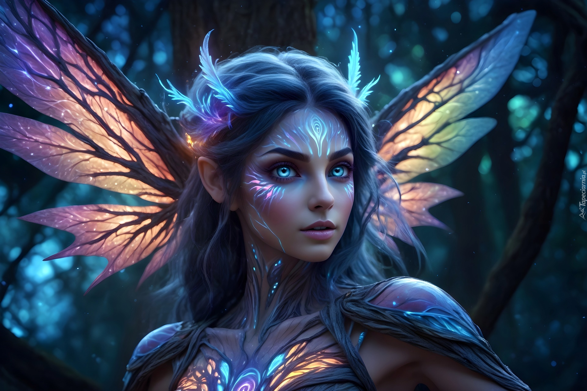 Edytor tapety: Twarz wróżki z podświetlonymi skrzydłami