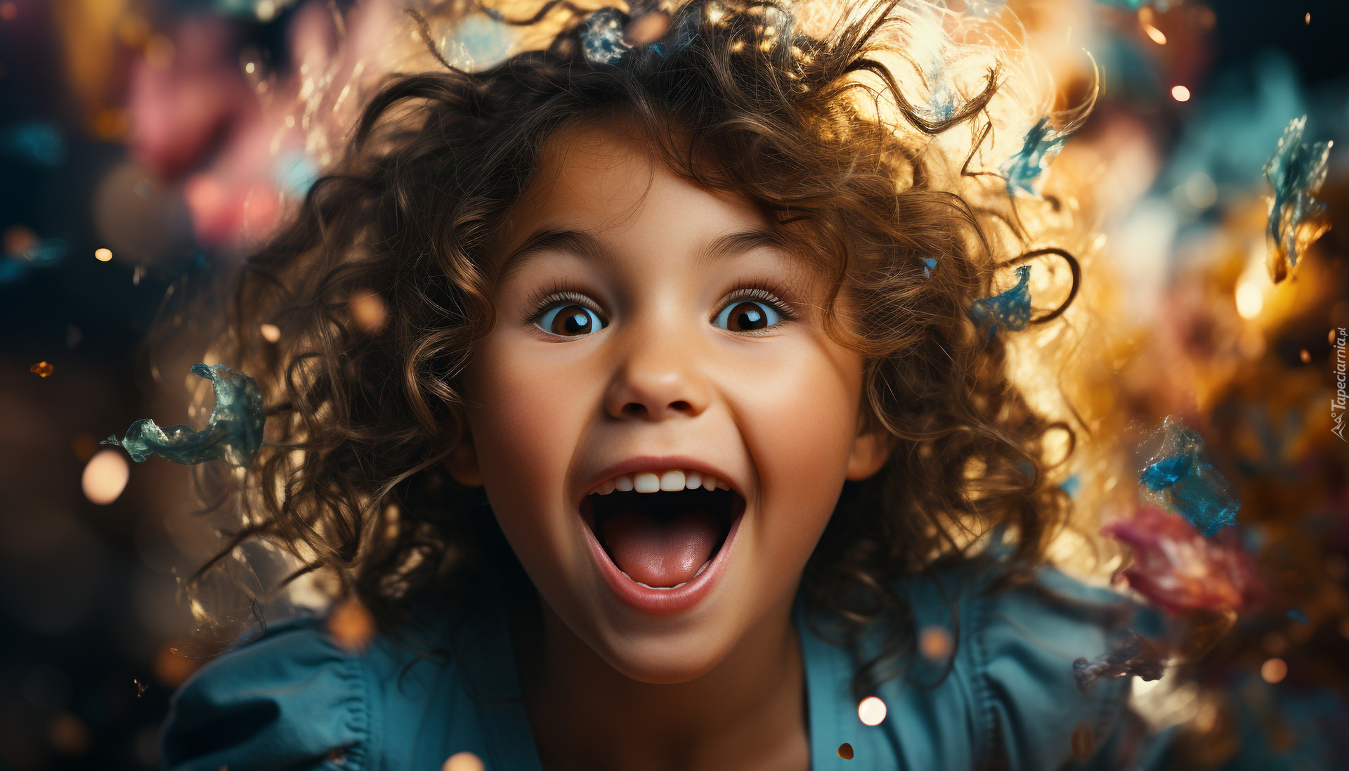 Edytor tapety: Twarz uśmiechniętej dziewczynki z otwartą buzią