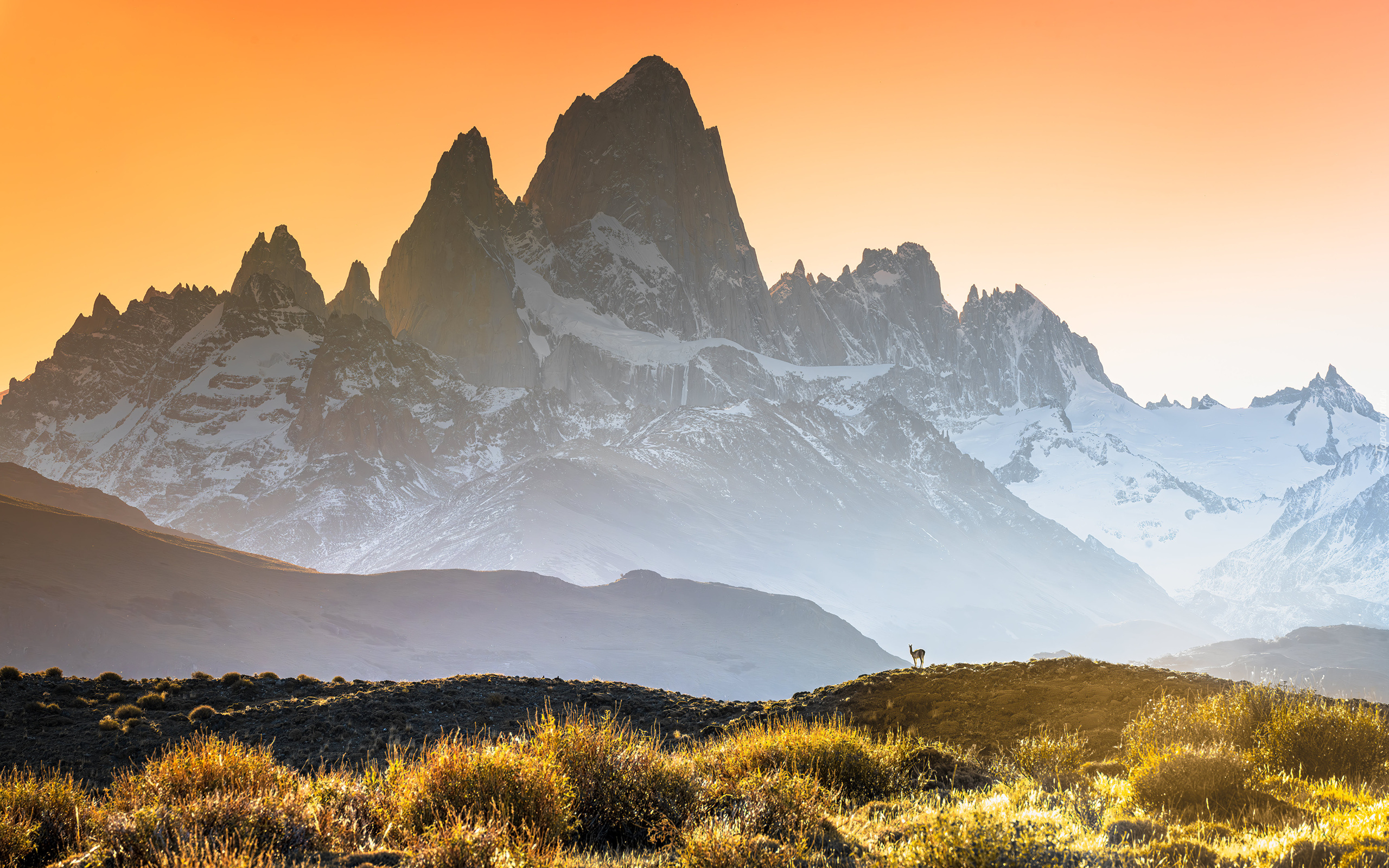 Edytor tapety: Widok na ośnieżone i lekko zamglone góry