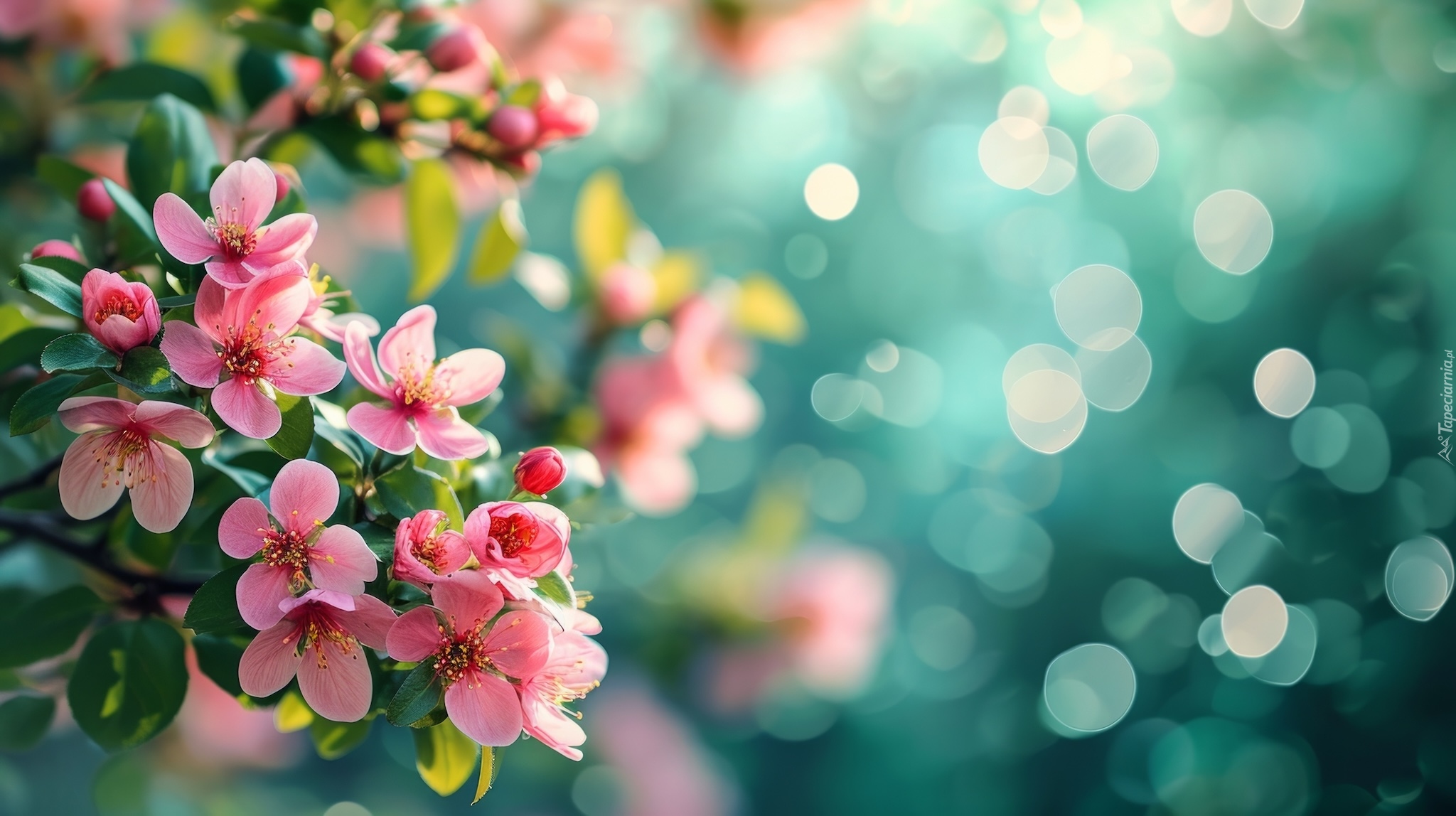 Edytor tapety: Gałązki drzewa owocowego z różowymi kwiatami