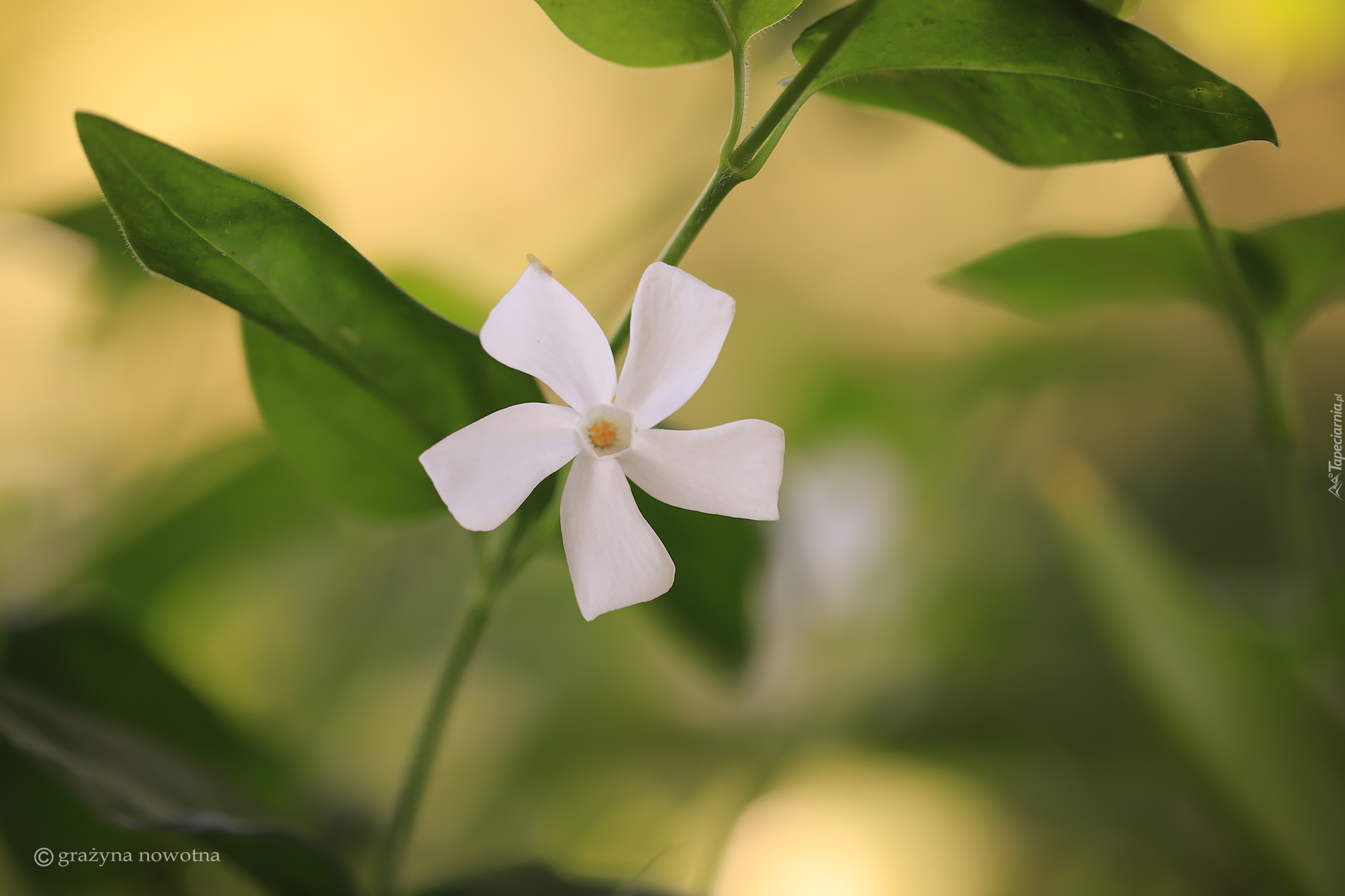 Edytor tapety: Biały barwinek na rozmytym tle