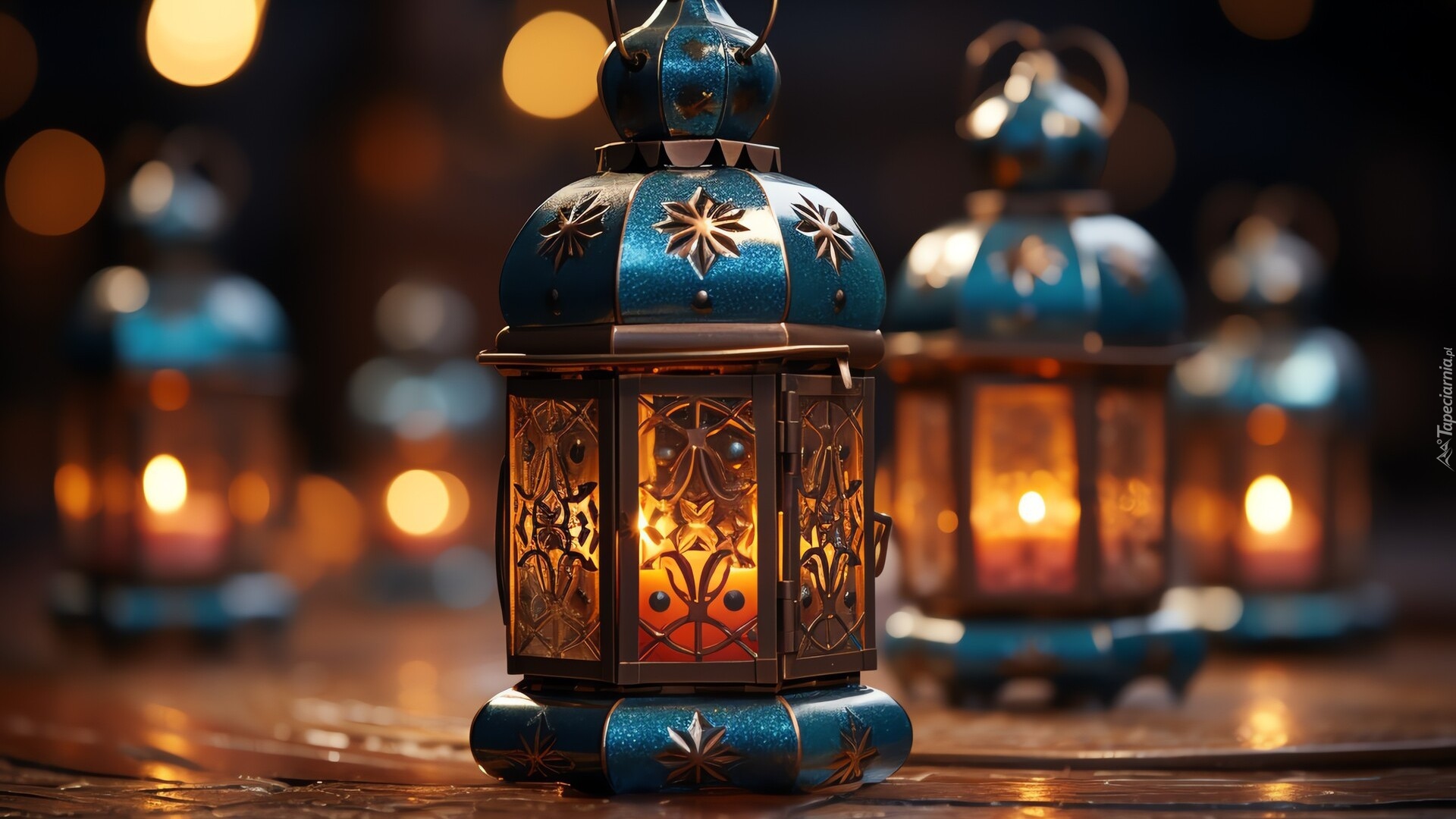 Edytor tapety: Świecące lampiony na ciemnym tle