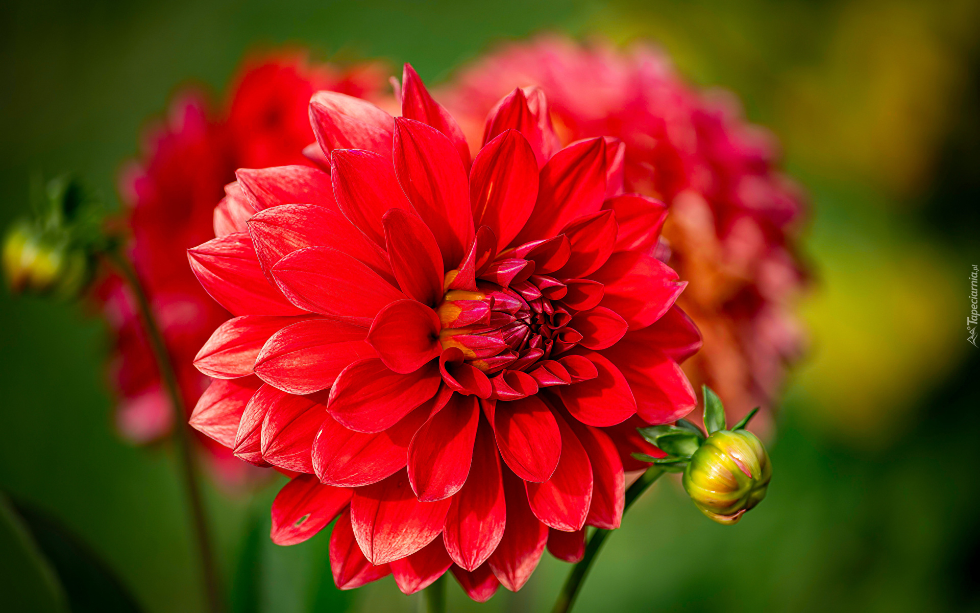 Edytor tapety: Czerwona dalia z pąkiem w zbliżeniu