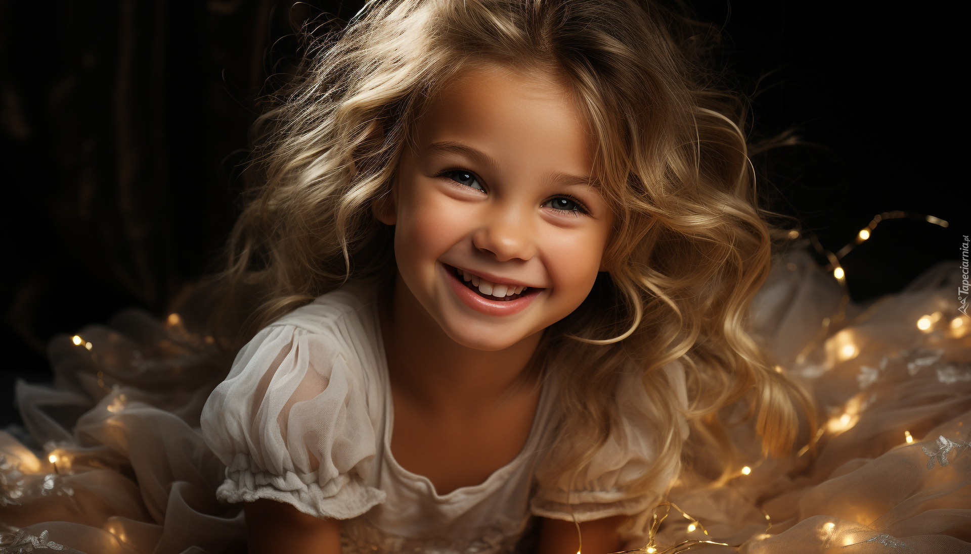 Edytor tapety: Uśmiechnięta dziewczynka z kręconymi blond włosami