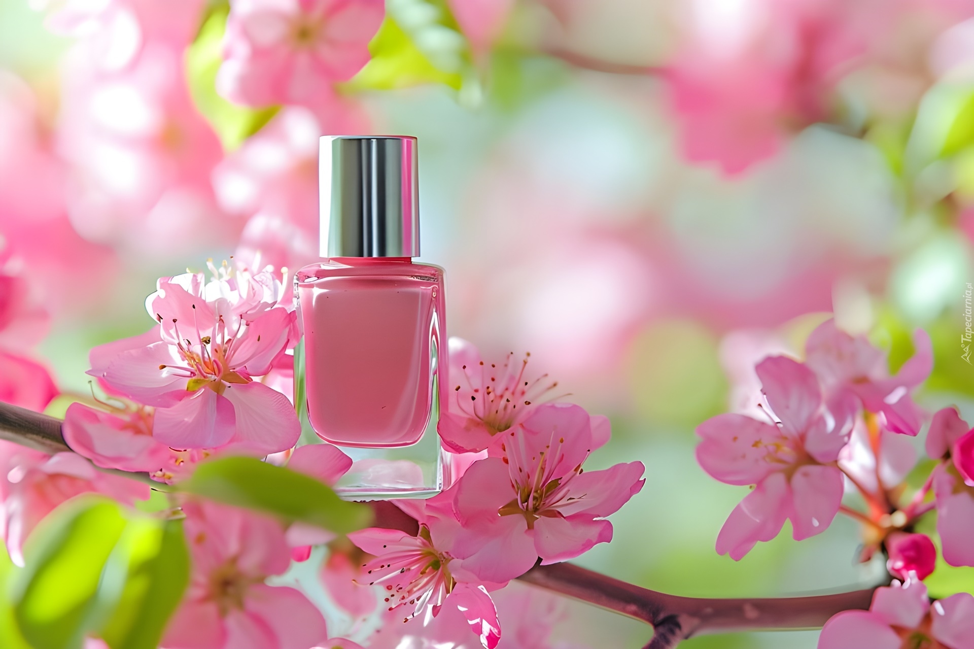 Edytor tapety: Lakier do paznokci na ukwieconej gałązce