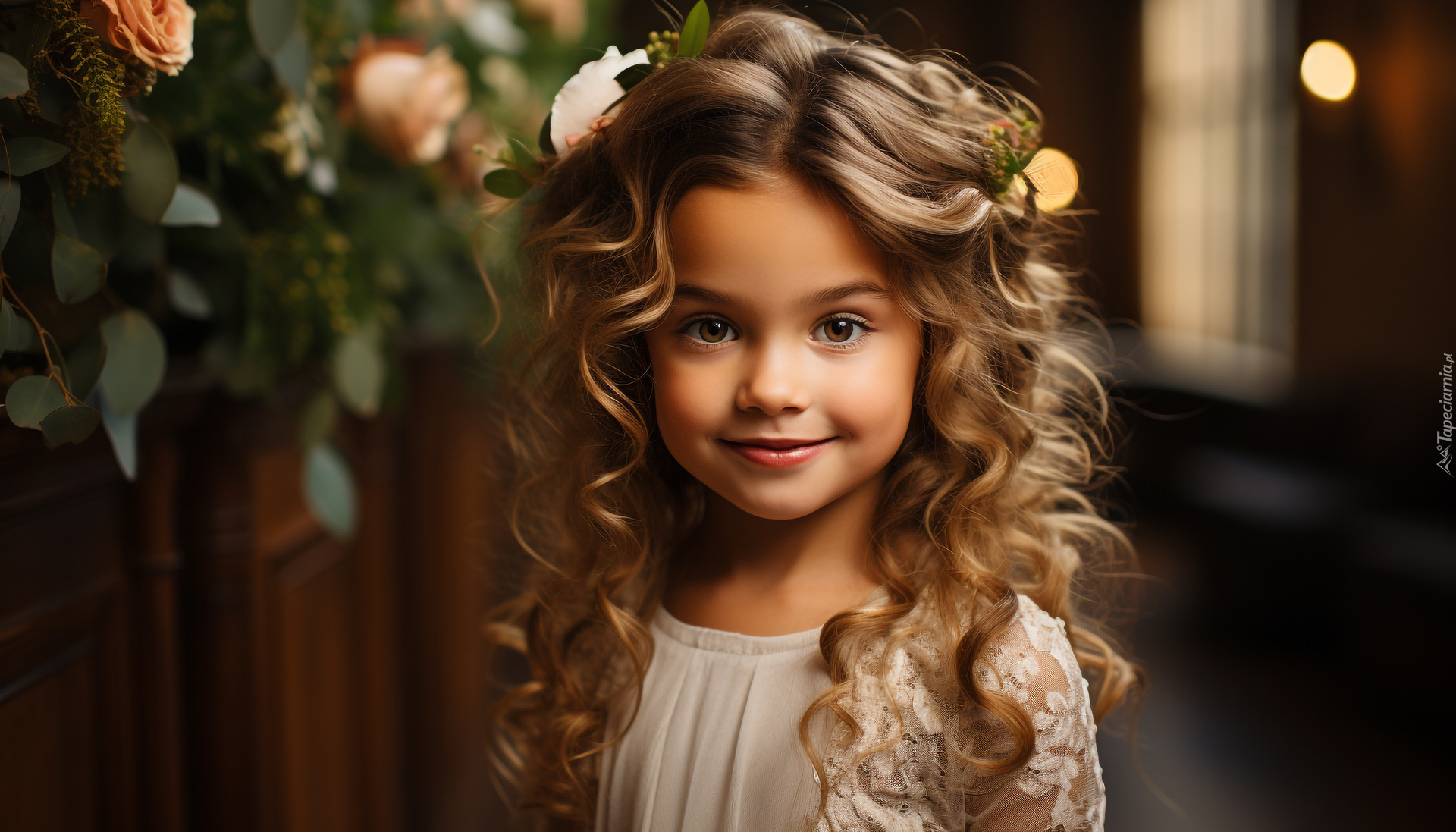 Edytor tapety: Twarz dziewczynki z długimi kręconymi włosami