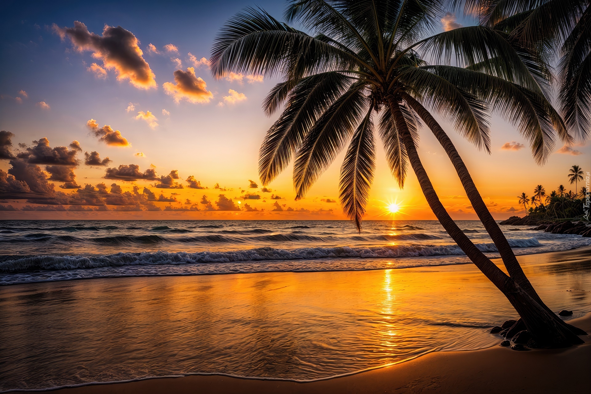 Edytor tapety: Palma nad morzem o zachodzie słońca