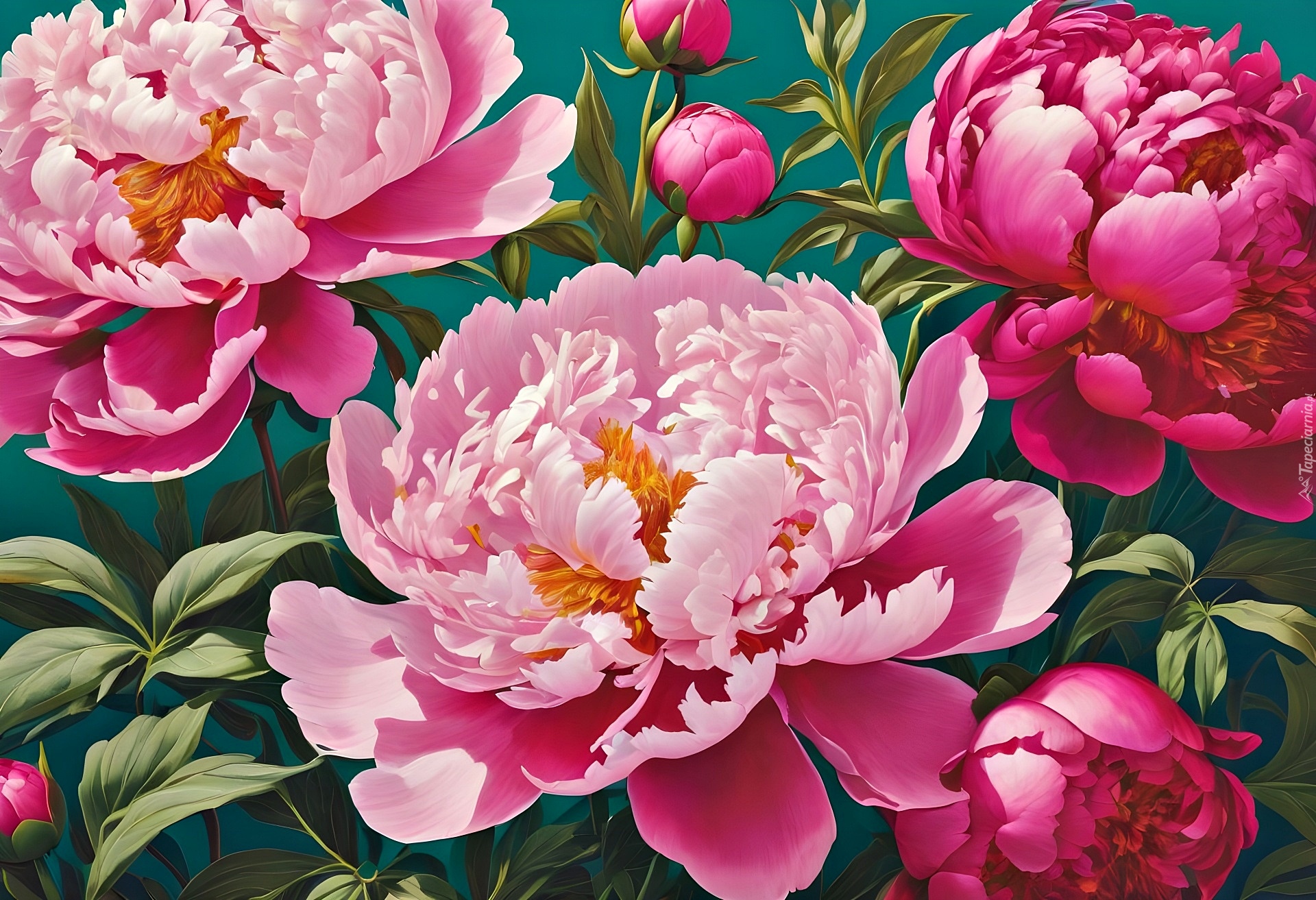 Edytor tapety: Rozwinięte różowe piwonie w grafice