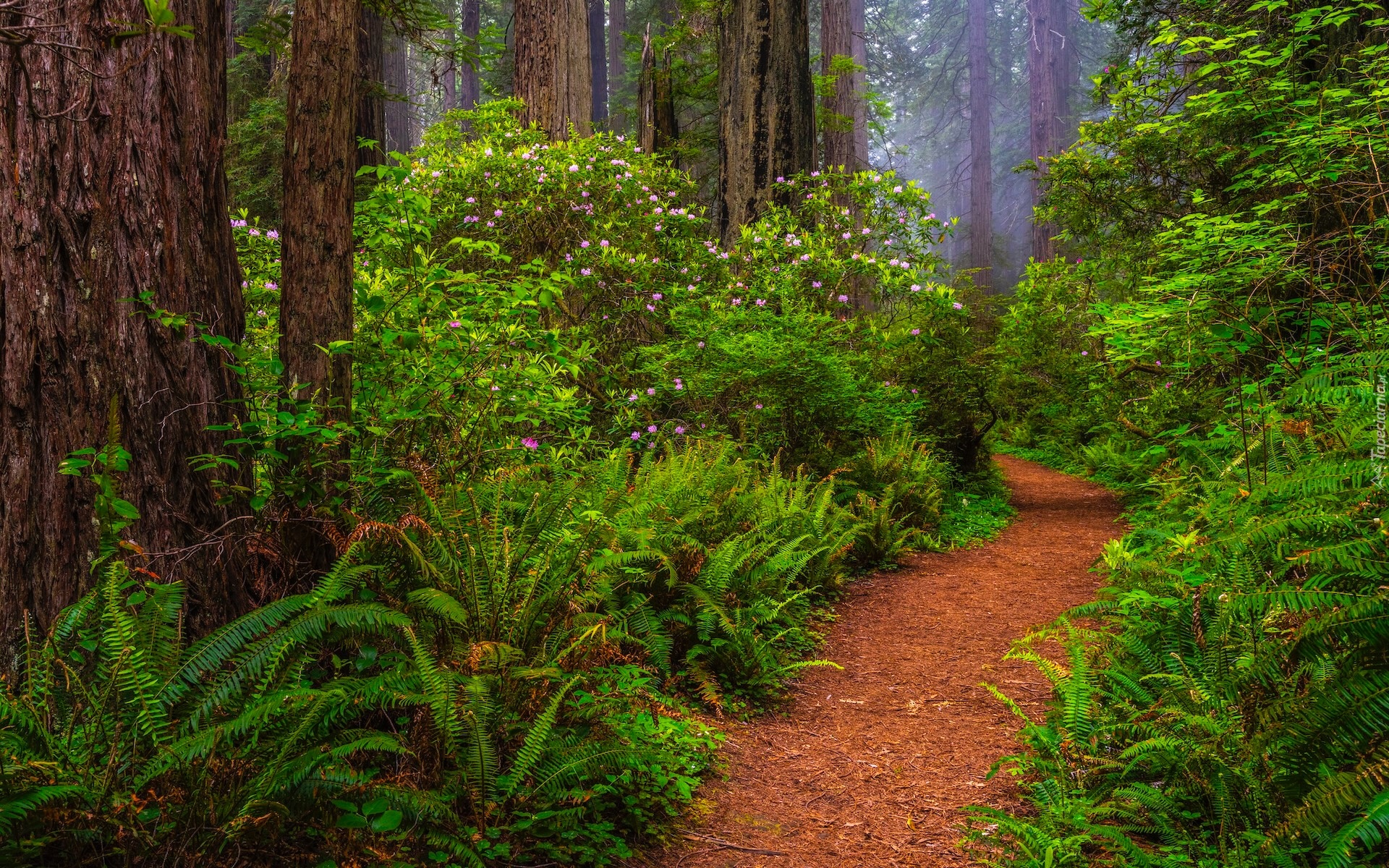 Edytor tapety: Rododendrony pod sekwojami w Parku Narodowym Redwood