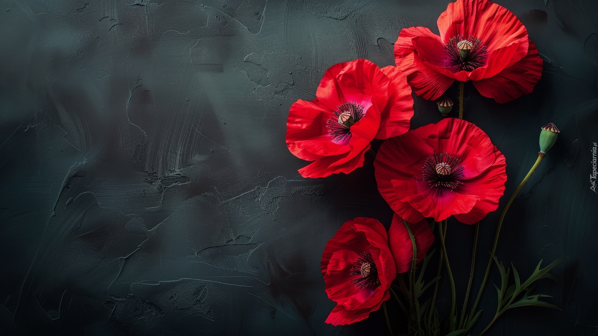 Edytor tapety: Czerwone maki na ciemnym tle