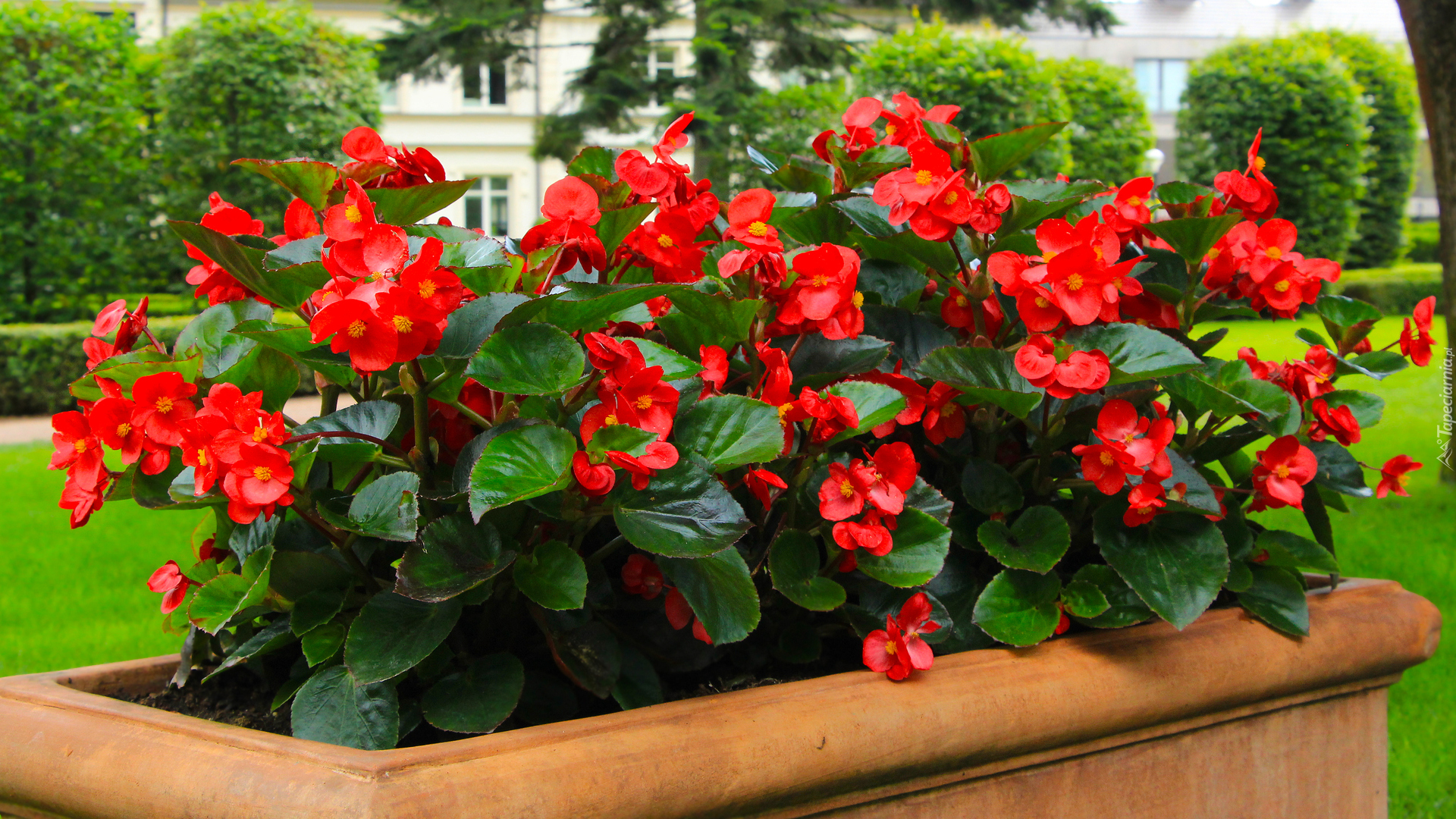 Edytor tapety: Czerwone begonie w donicy