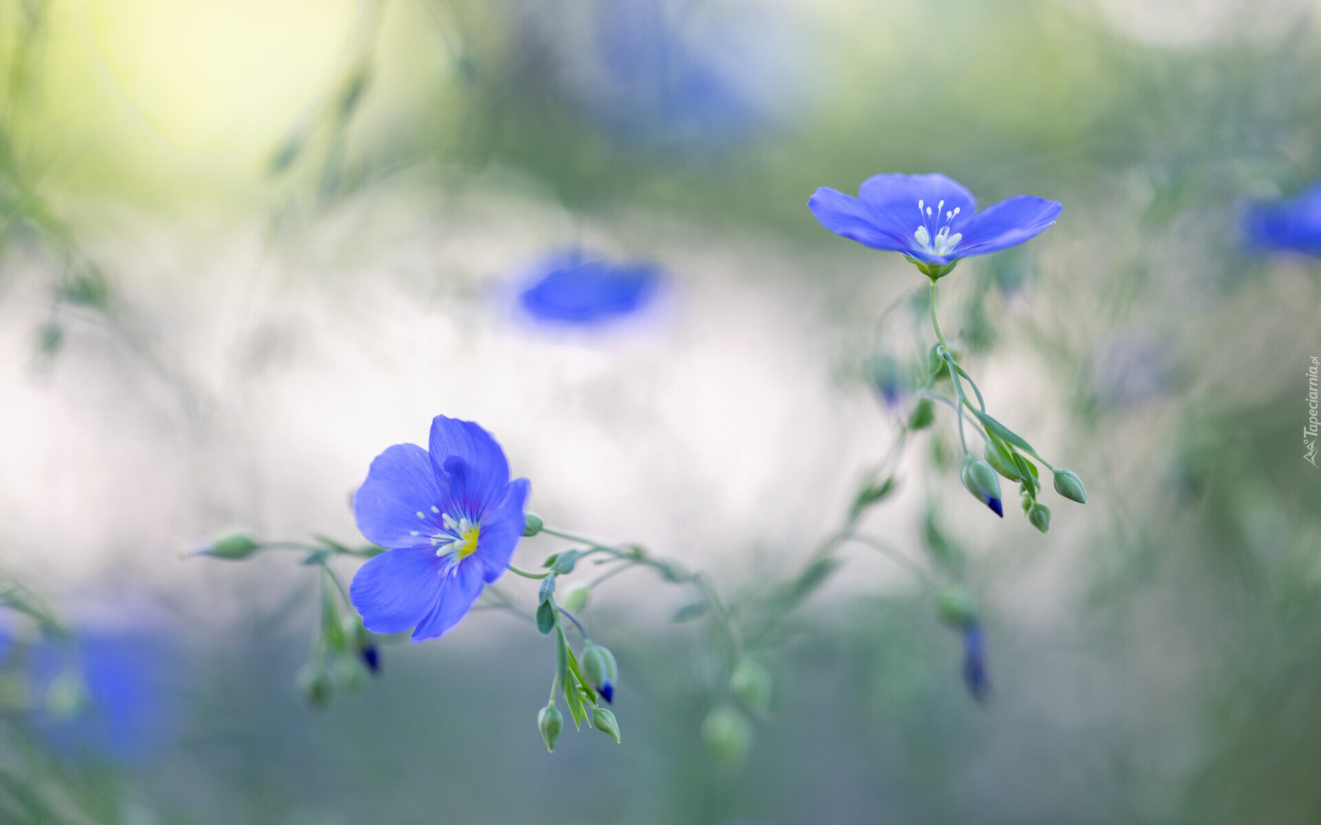 Edytor tapety: Niebieskie kwiatki lnu na rozmytym tle