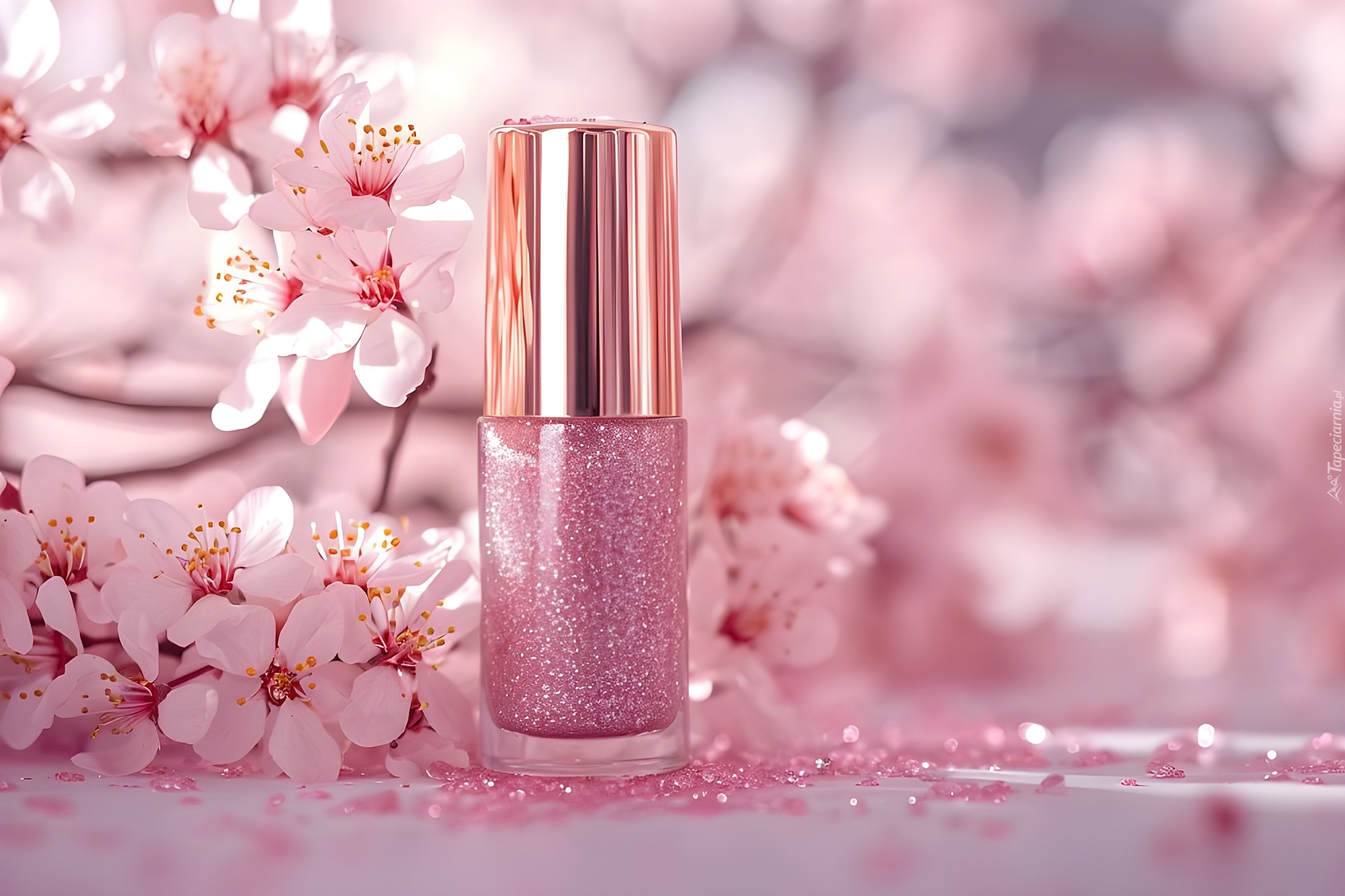 Edytor tapety: Lakier do paznokci i ukwiecona gałązka