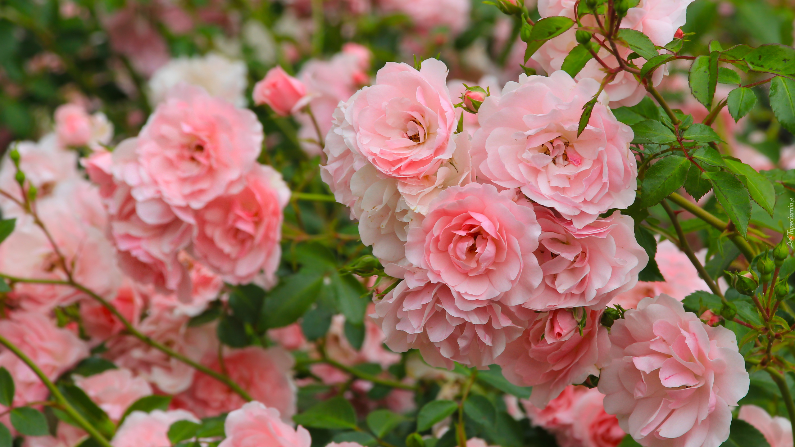 Edytor tapety: Krzew z różowymi różami w zbliżeniu