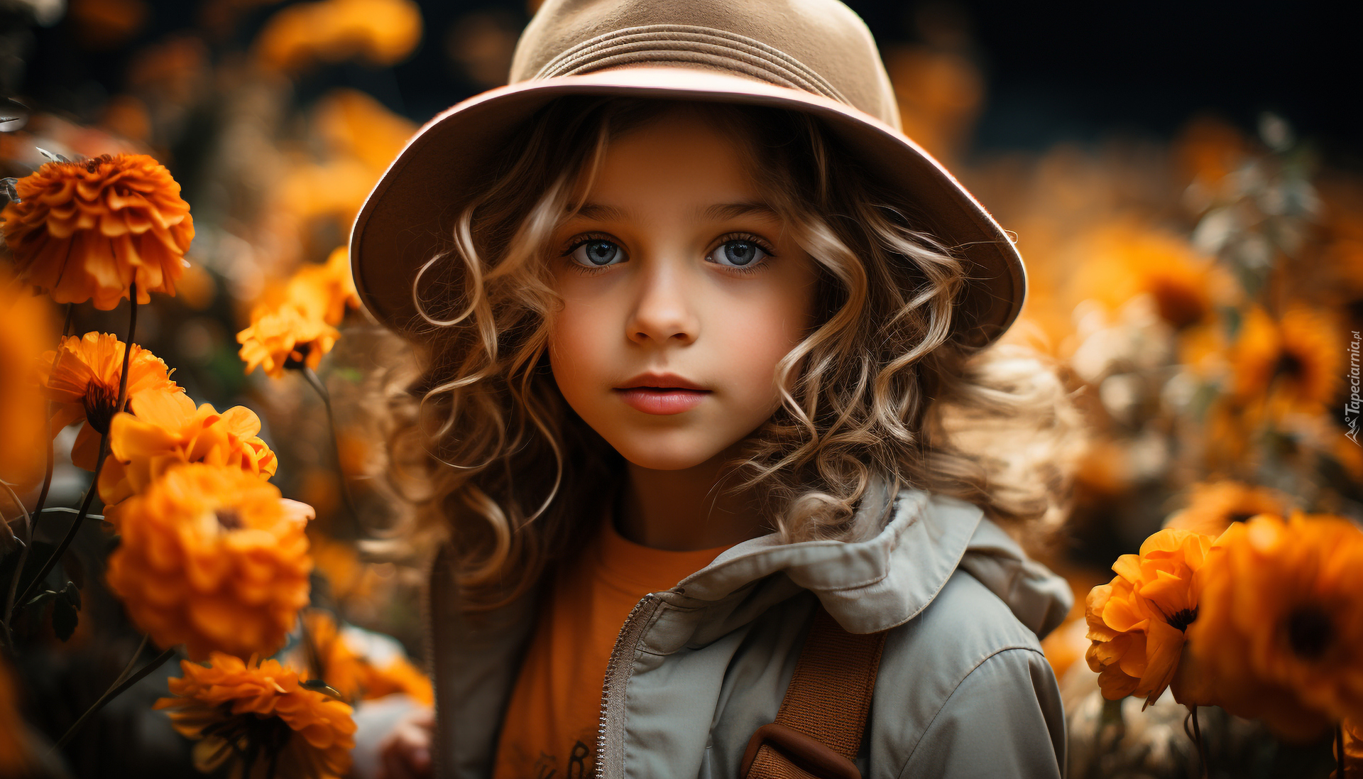 Edytor tapety: Twarz dziewczynki w brązowym kapeluszu