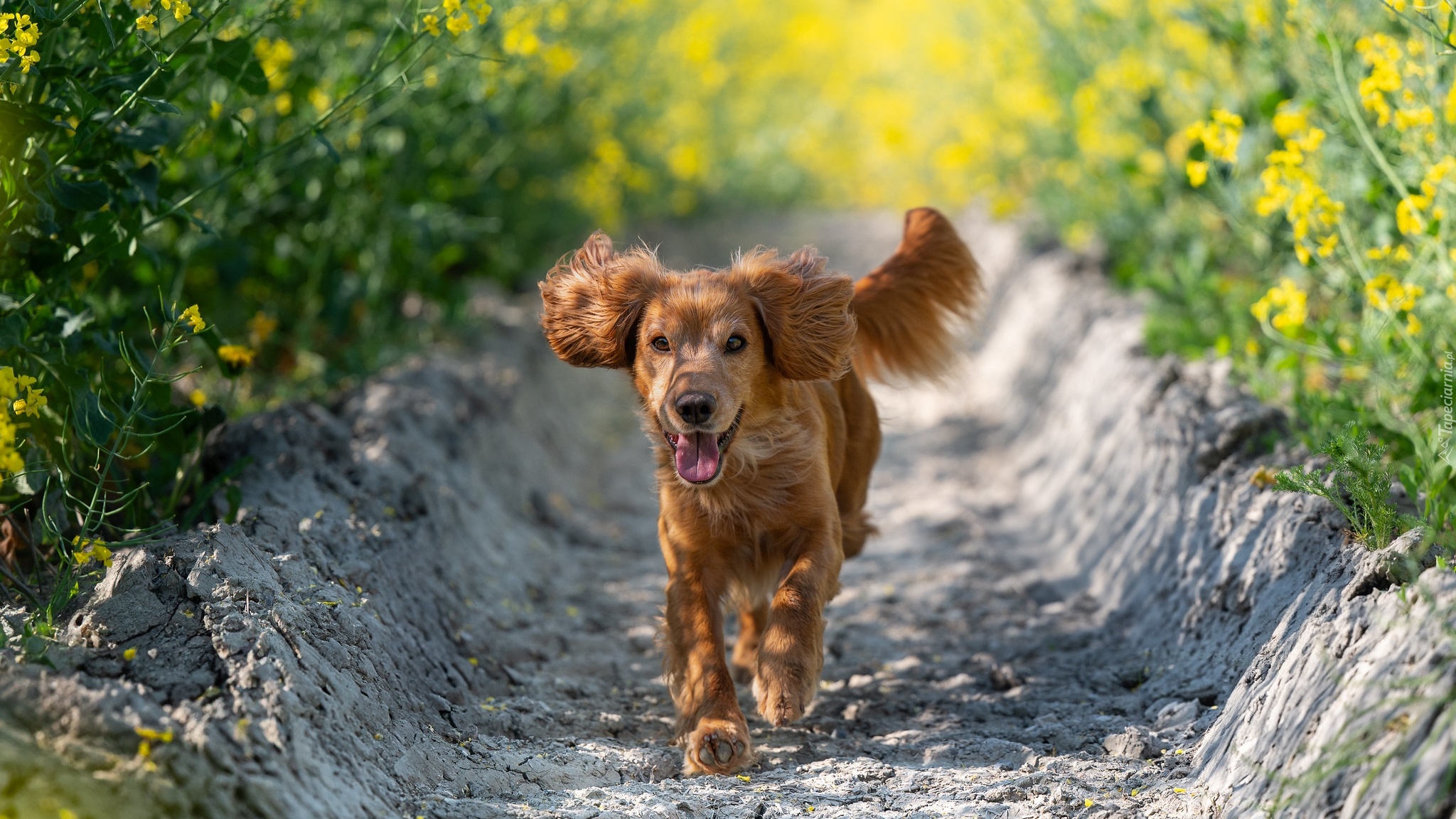 Edytor tapety: Working cocker spaniel na polnej ścieżce