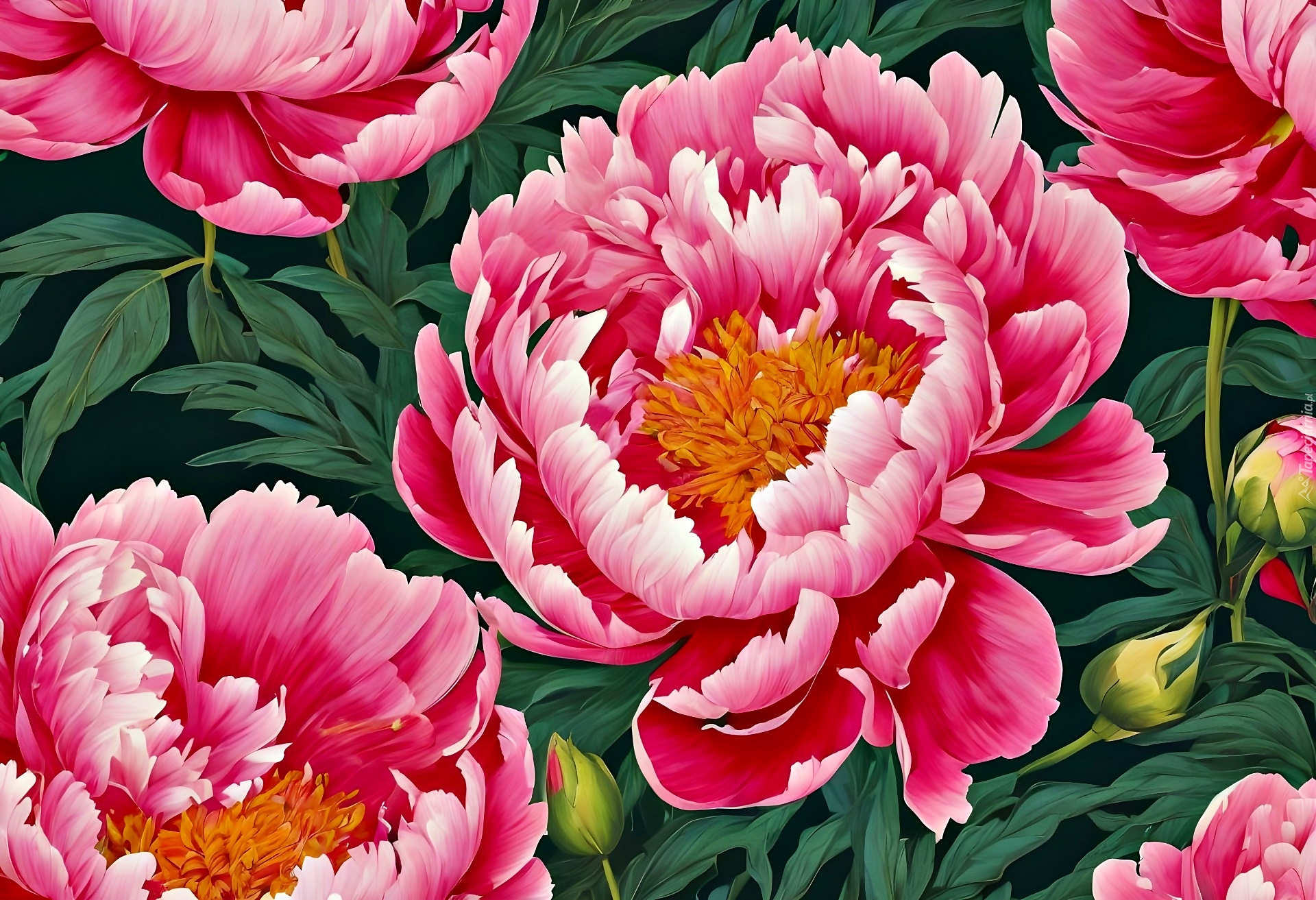 Edytor tapety: Rozkwitające różowe piwonie w grafice 3D