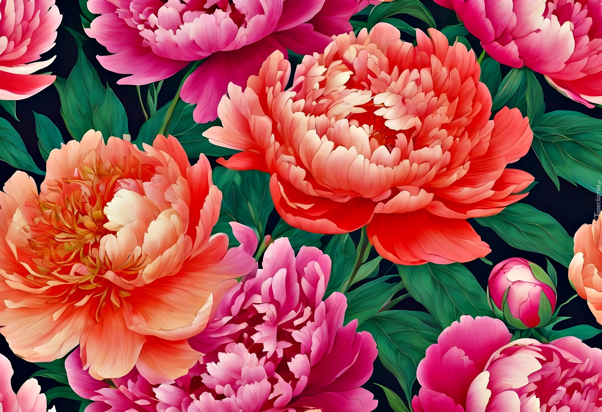 Edytor tapety: Czerwone i różowe piwonie w grafice