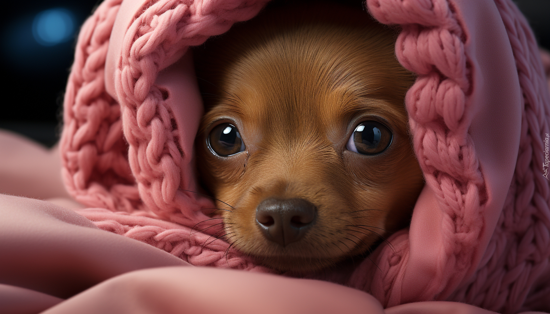 Edytor tapety: Mordka brązowego szczeniaka w różowym szalu