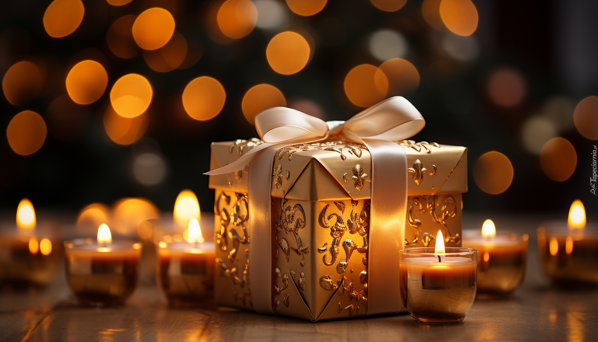 Edytor tapety: Rozświetlony blaskiem świec prezent