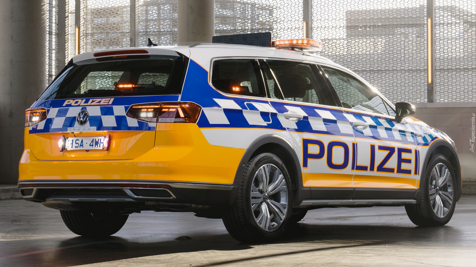 Edytor tapety: Policyjny Volkswagen Passat Alltrack tył i bok