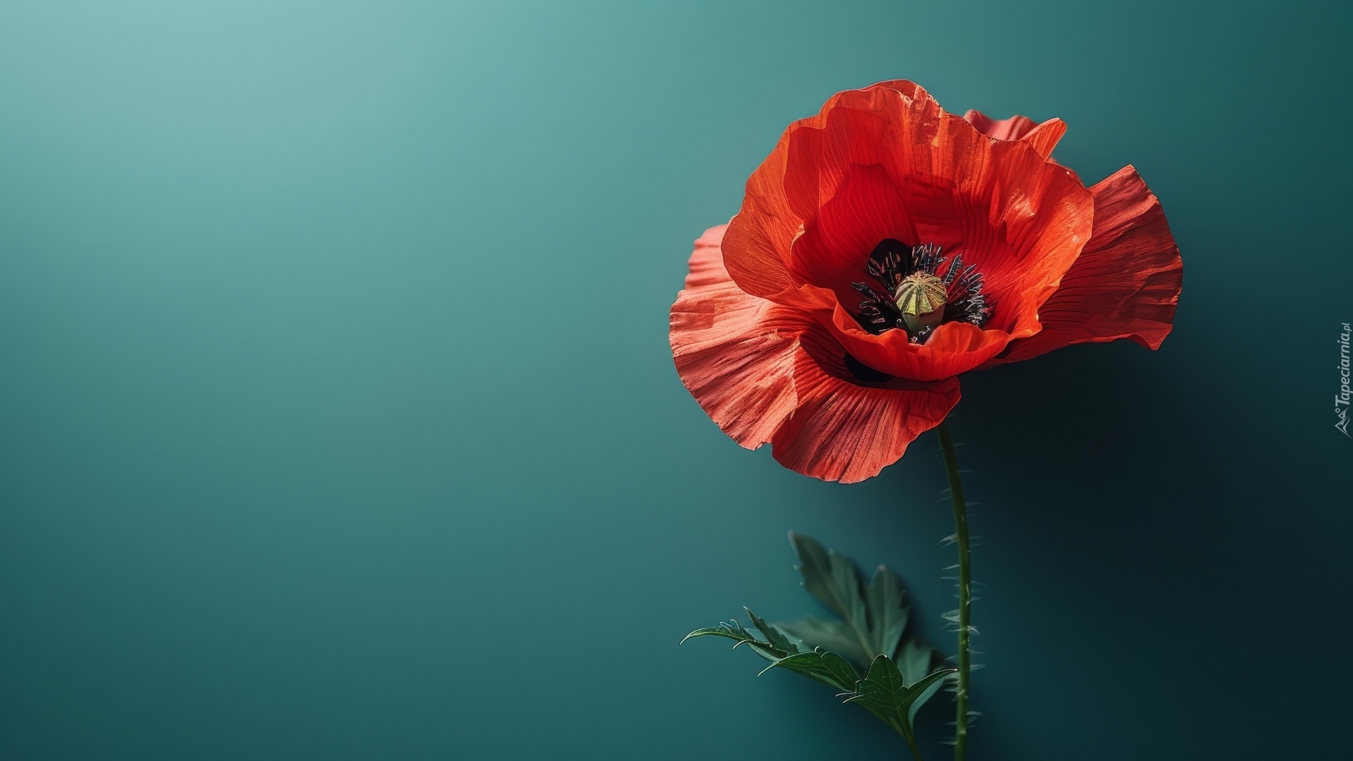 Edytor tapety: Rozkwitnięty czerwony mak na ciemnym tle