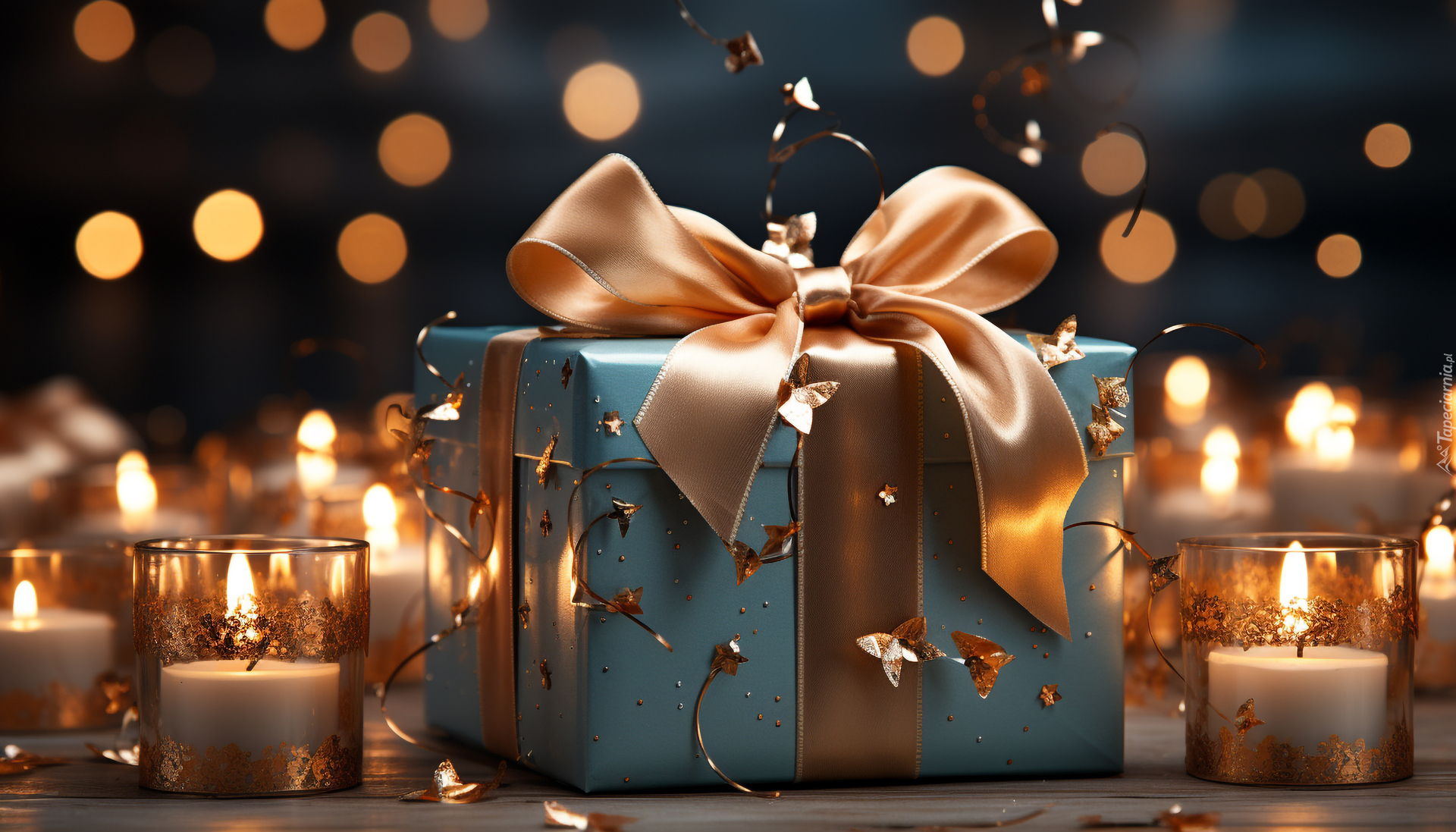 Edytor tapety: Prezent z kokardą wśród płonących świec