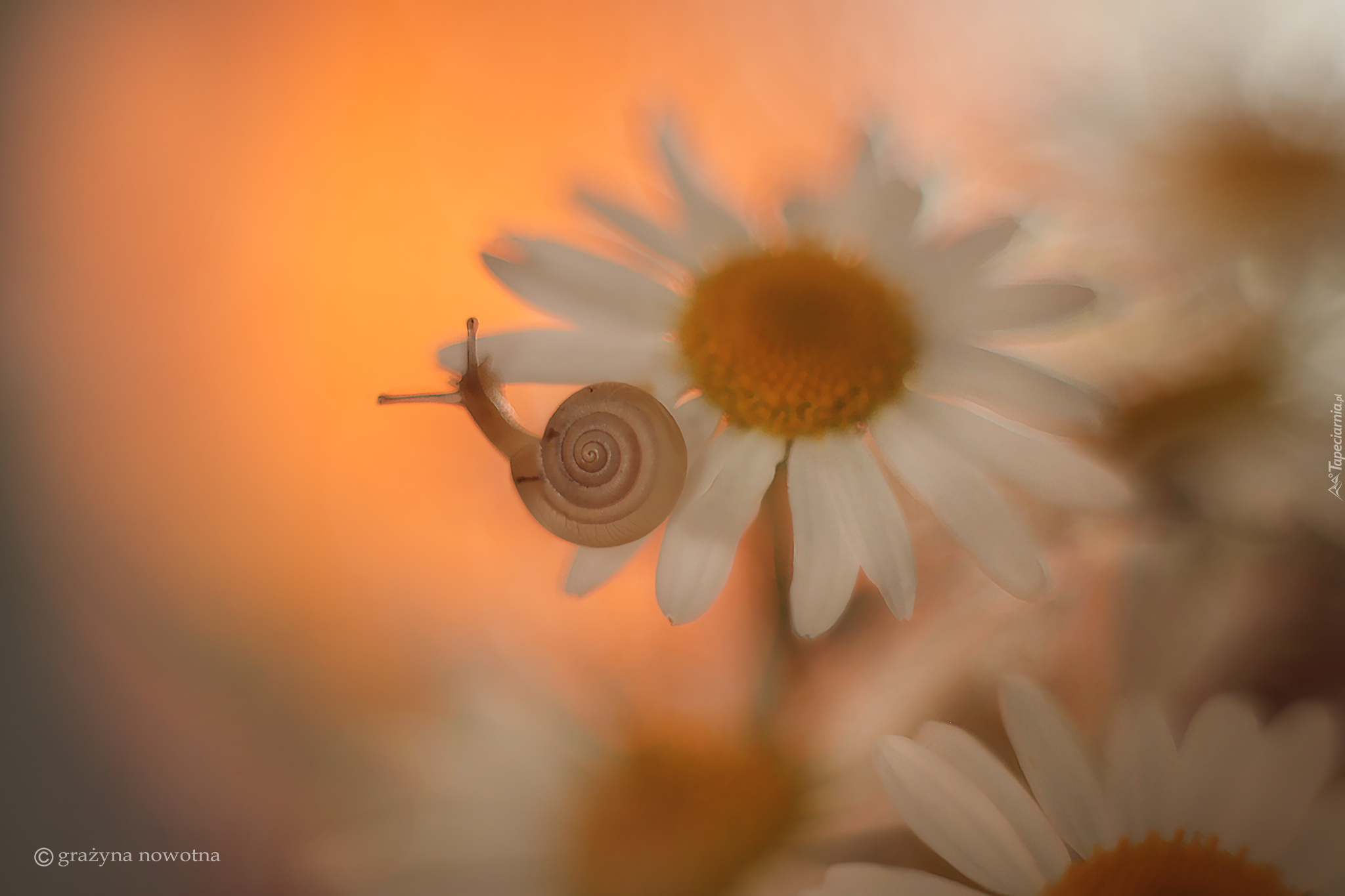 Edytor tapety: Ślimak na kwiatku margerytki