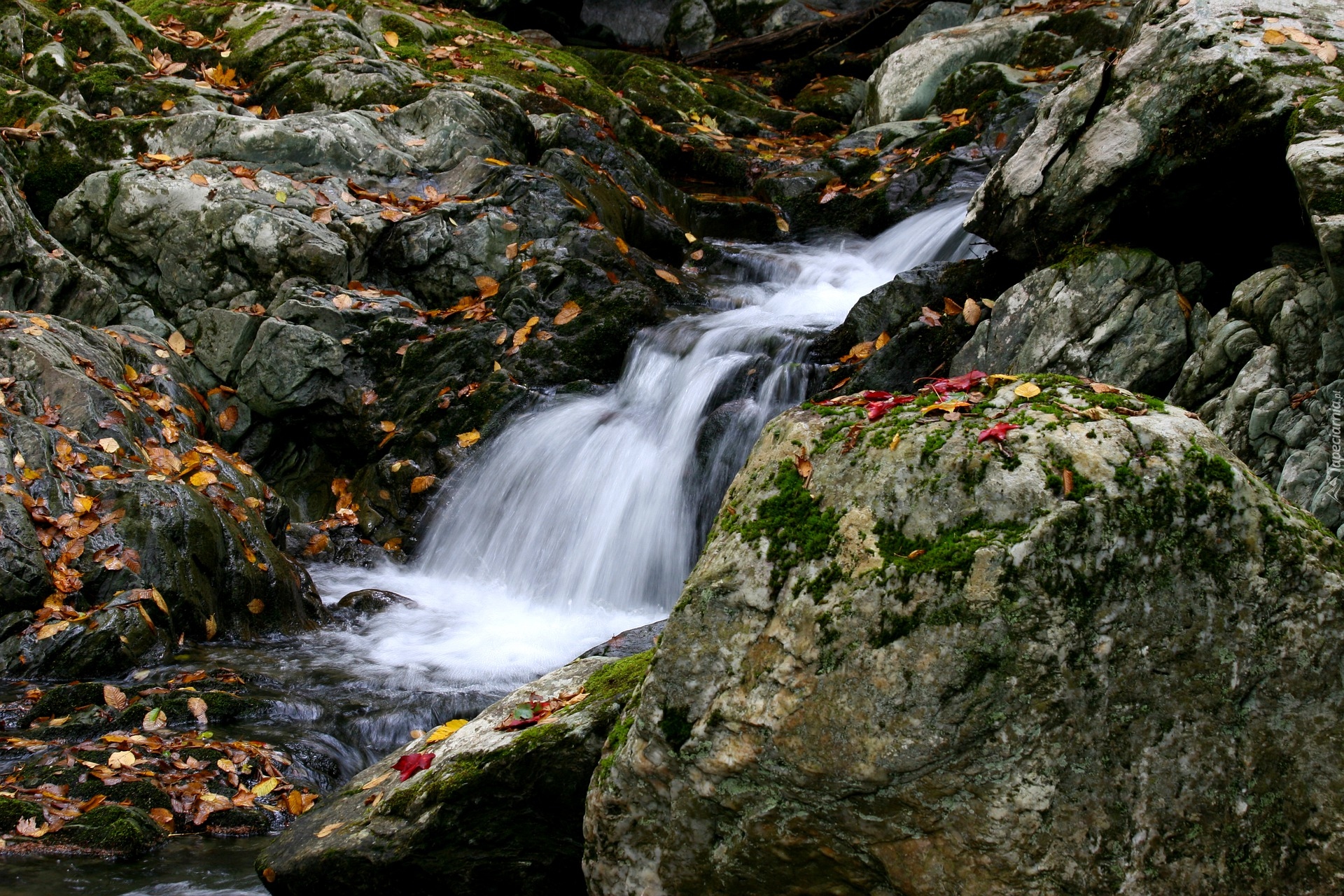 Edytor tapety: Potok płynący po skałach