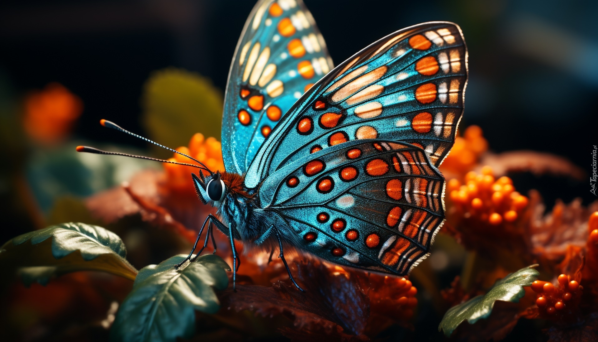 Edytor tapety: Rozświetlone skrzydła kolorowego motyla