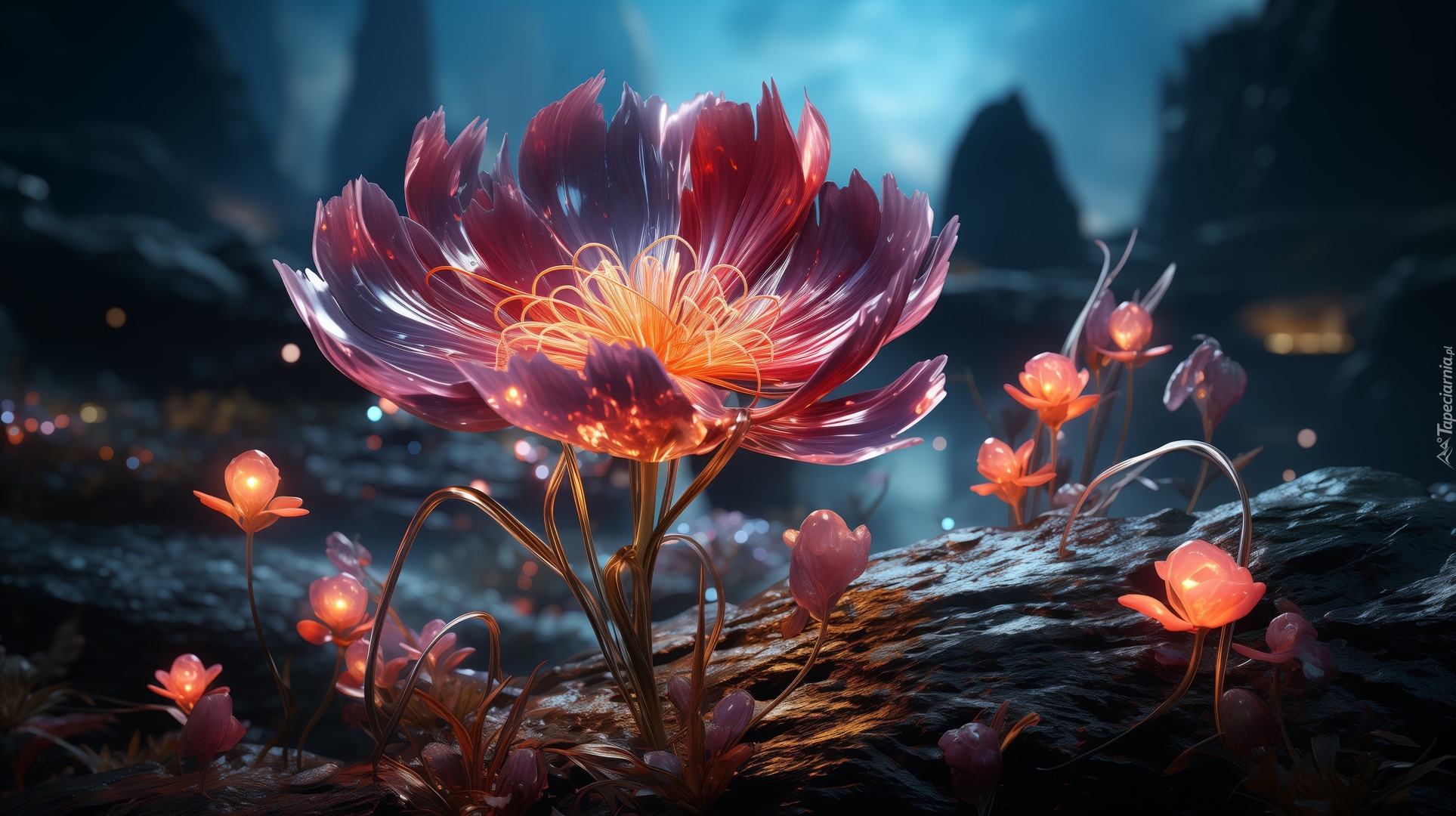 Edytor tapety: Duży kwiat i małe rozświetlone kwiatuszki