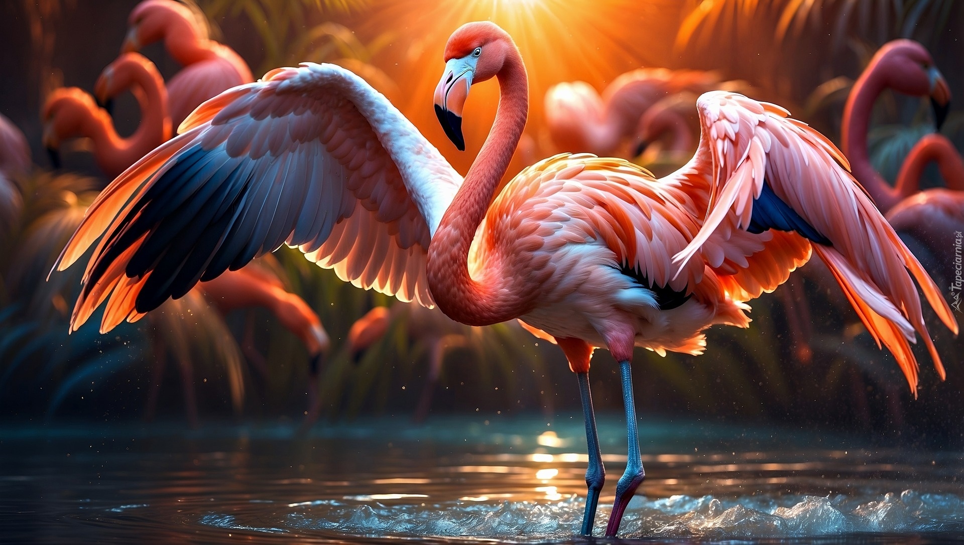 Edytor tapety: Flaming z rozłożonymi skrzydłami w wodzie