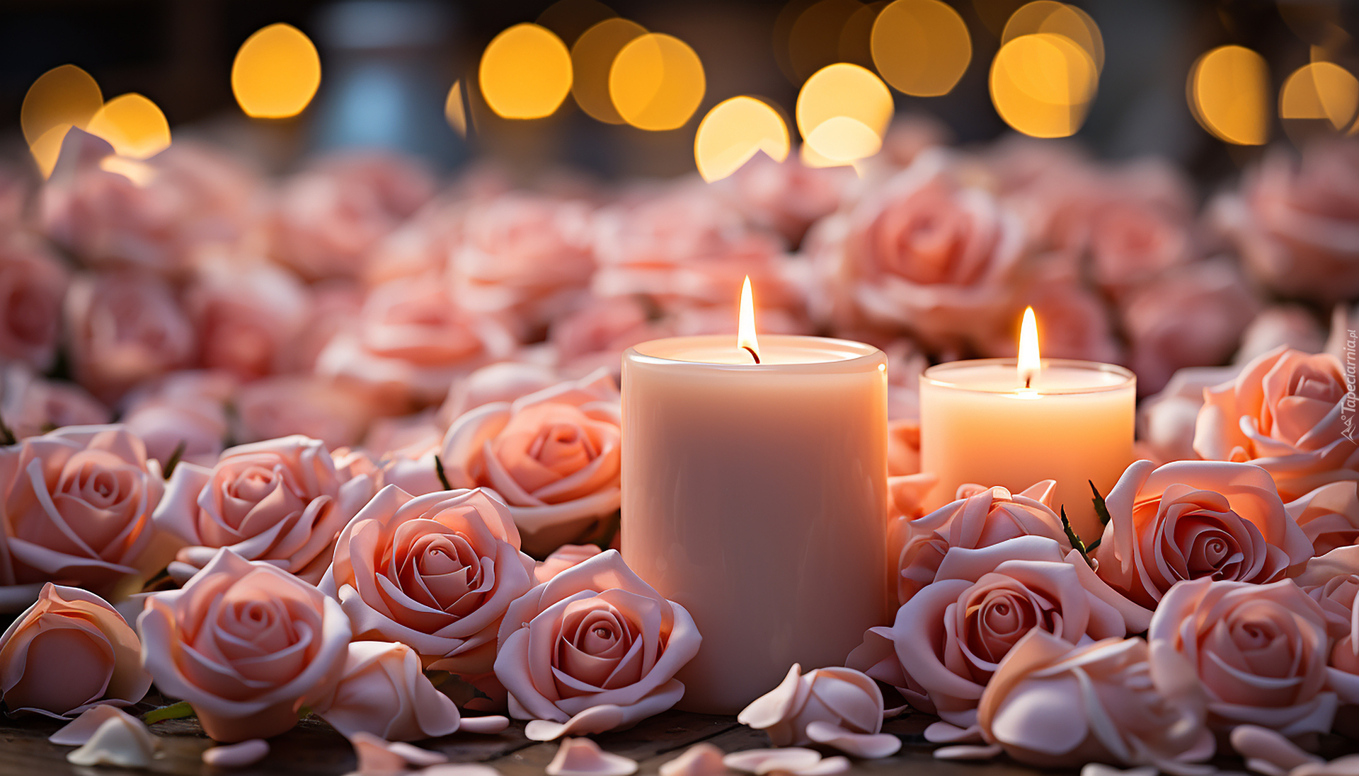 Edytor tapety: Dwie świeczki wśród różowych róż