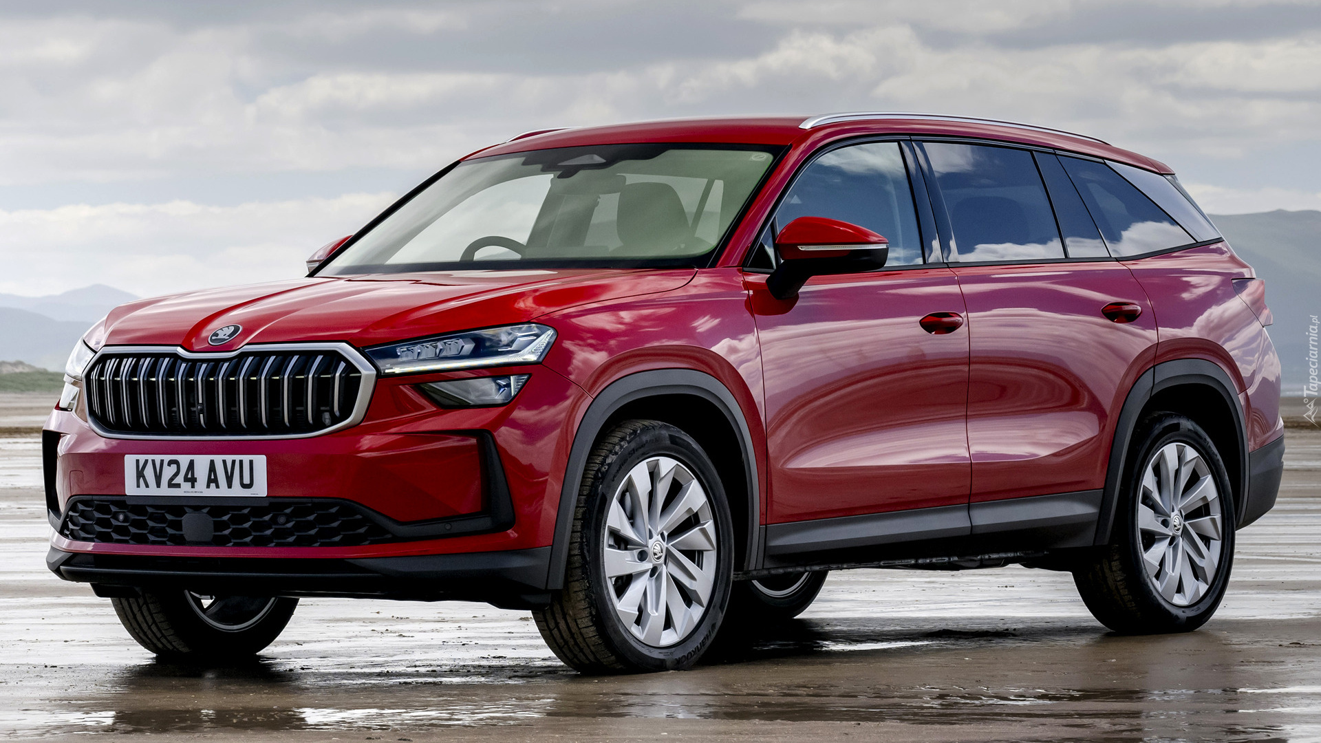 Edytor tapety: Bordowa Skoda Kodiaq przód i bok