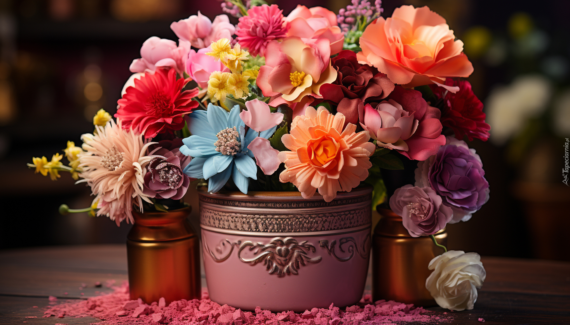 Edytor tapety: Kolorowy bukiet kwiatów w ozdobnym wazonie