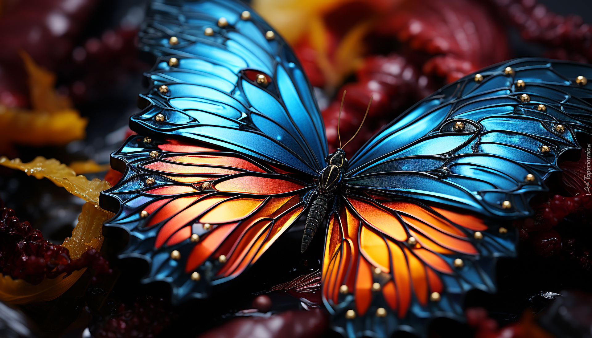 Edytor tapety: Kolorowy motyl w grafice w zbliżeniu