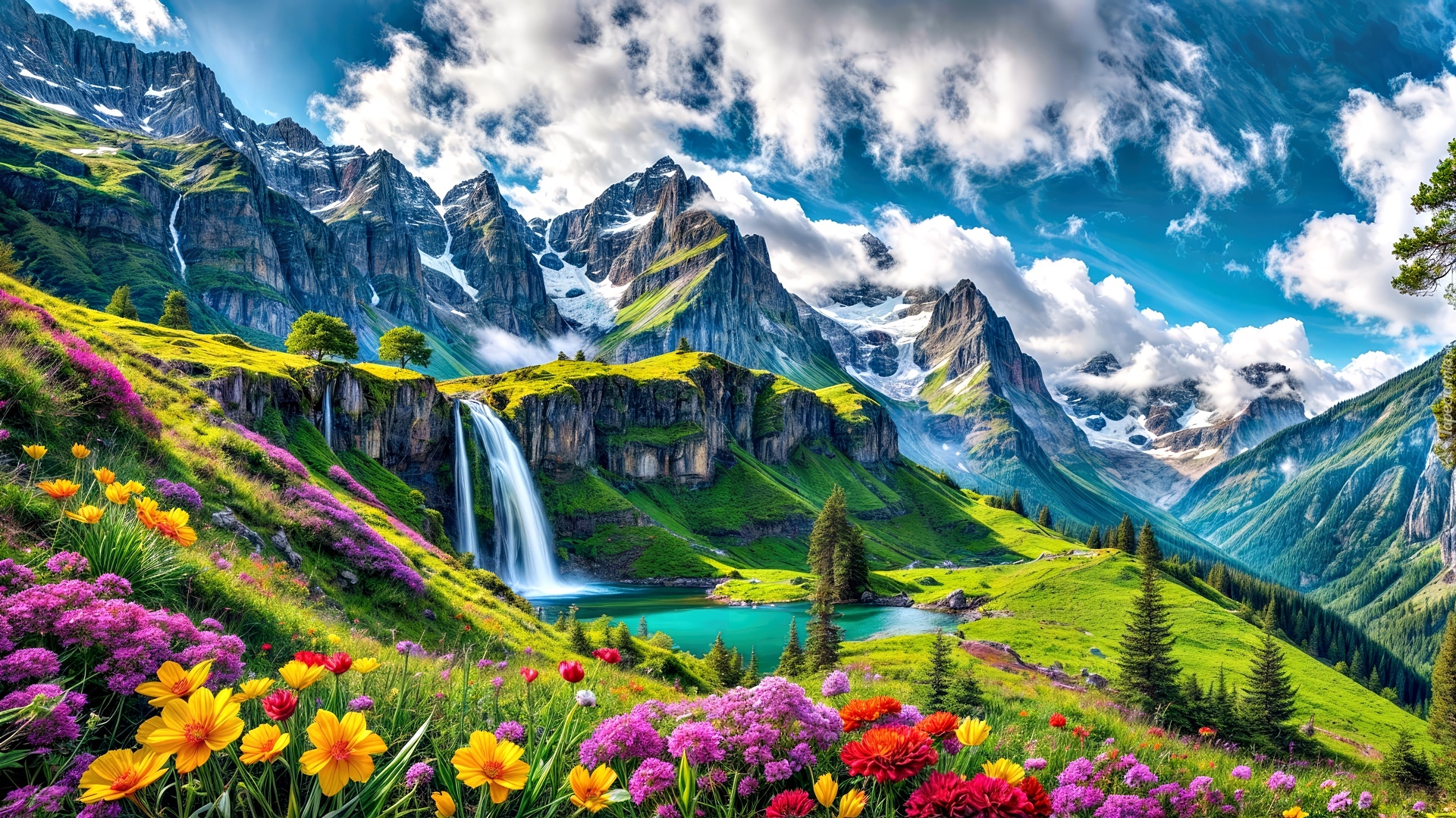 Edytor tapety: Wodospad w górach