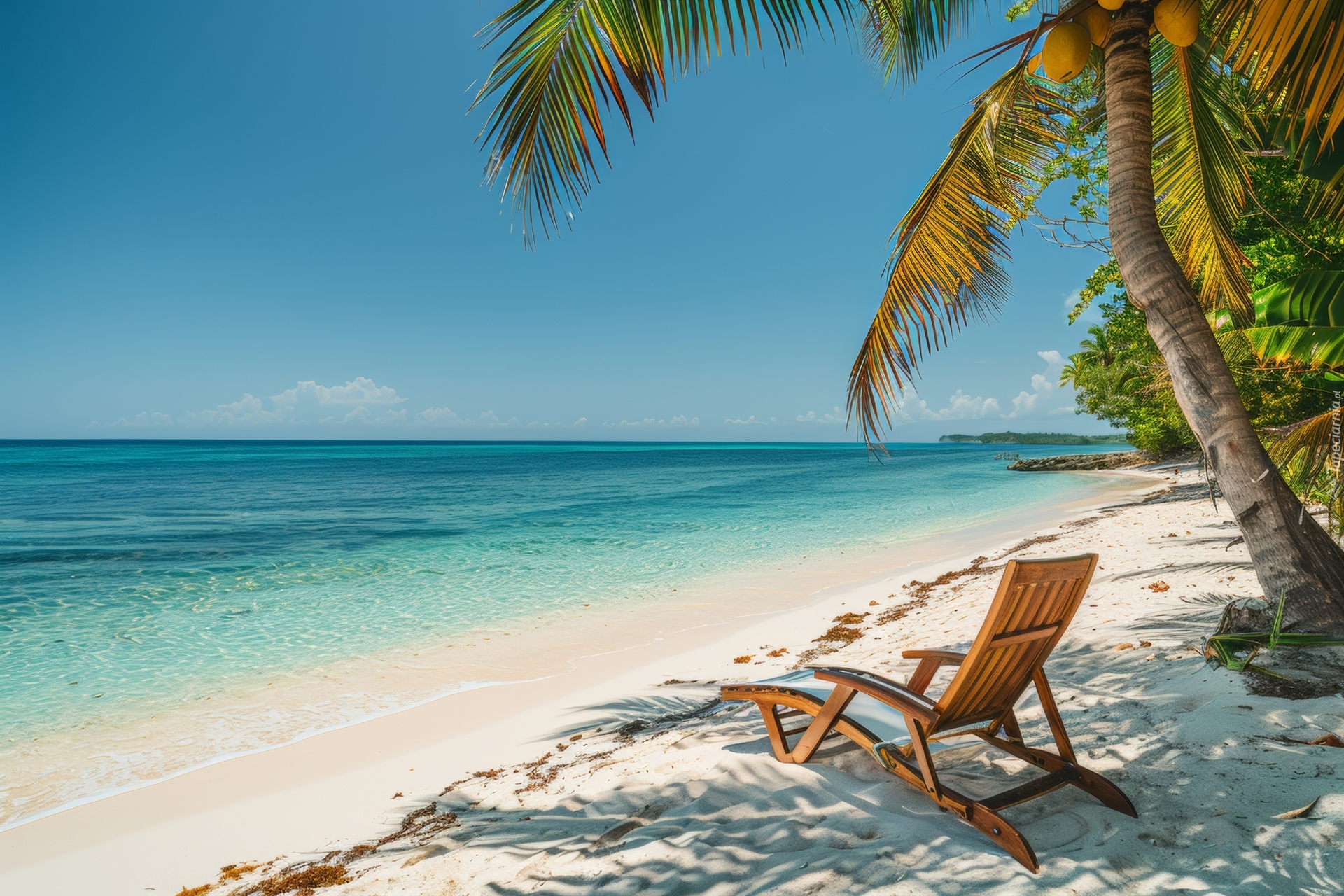 Edytor tapety: Leżak pod palmą na morskiej plaży w tropikach
