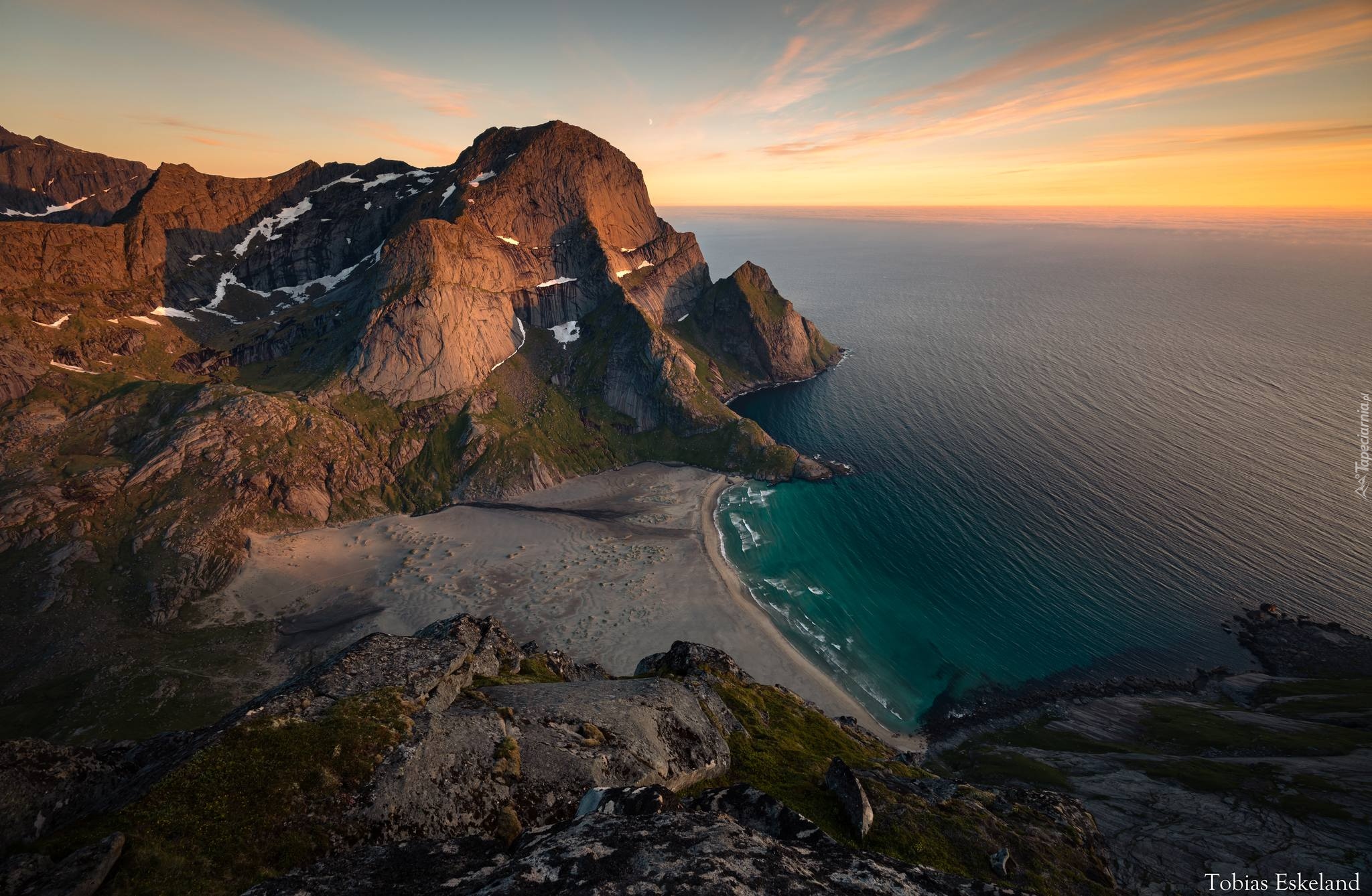 Edytor tapety: Szczyt Helvetestinden i plaża Bunes nad morzem Norweskim