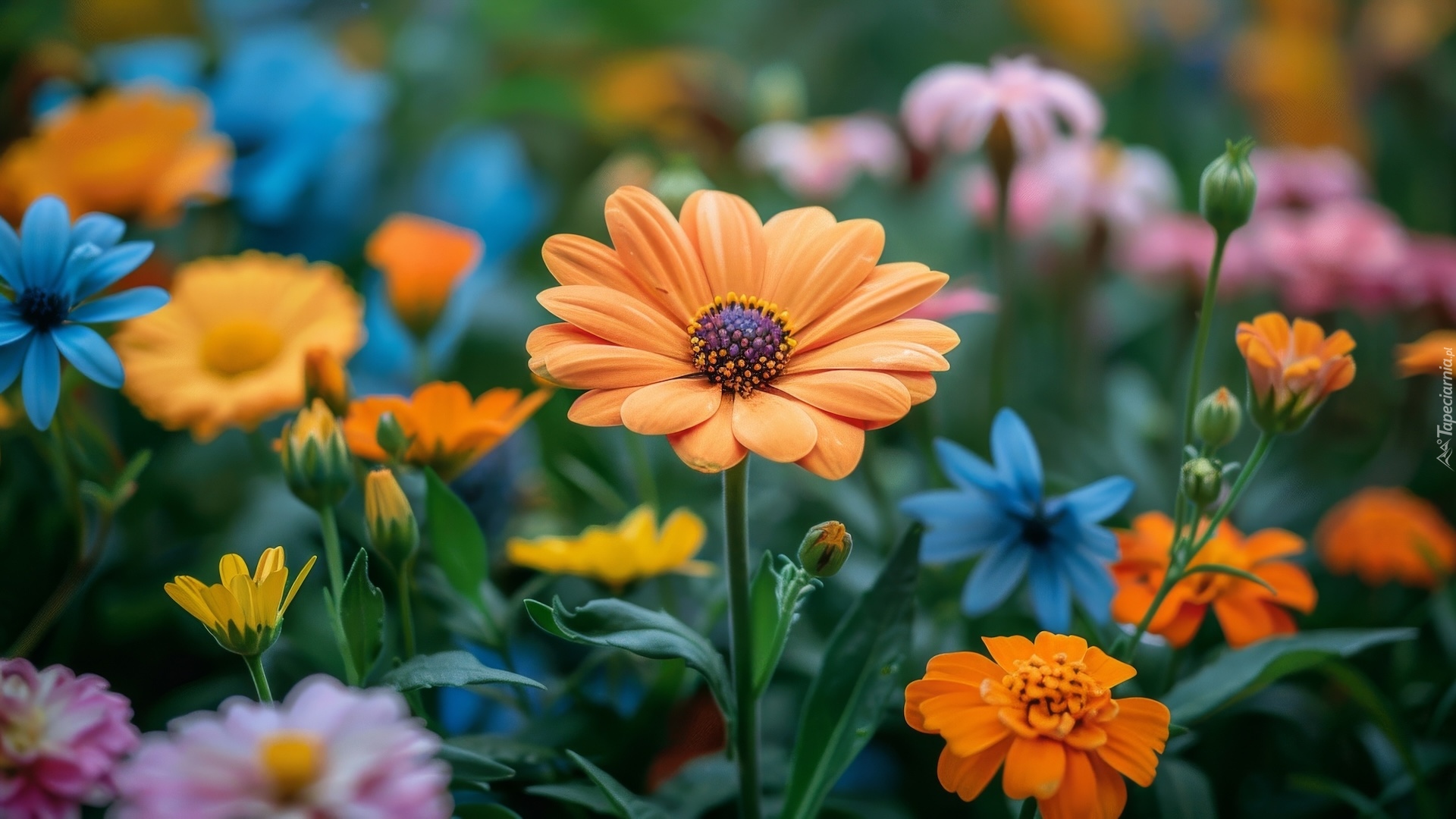 Edytor tapety: Kolorowe stokrotki afrykańskie na łące
