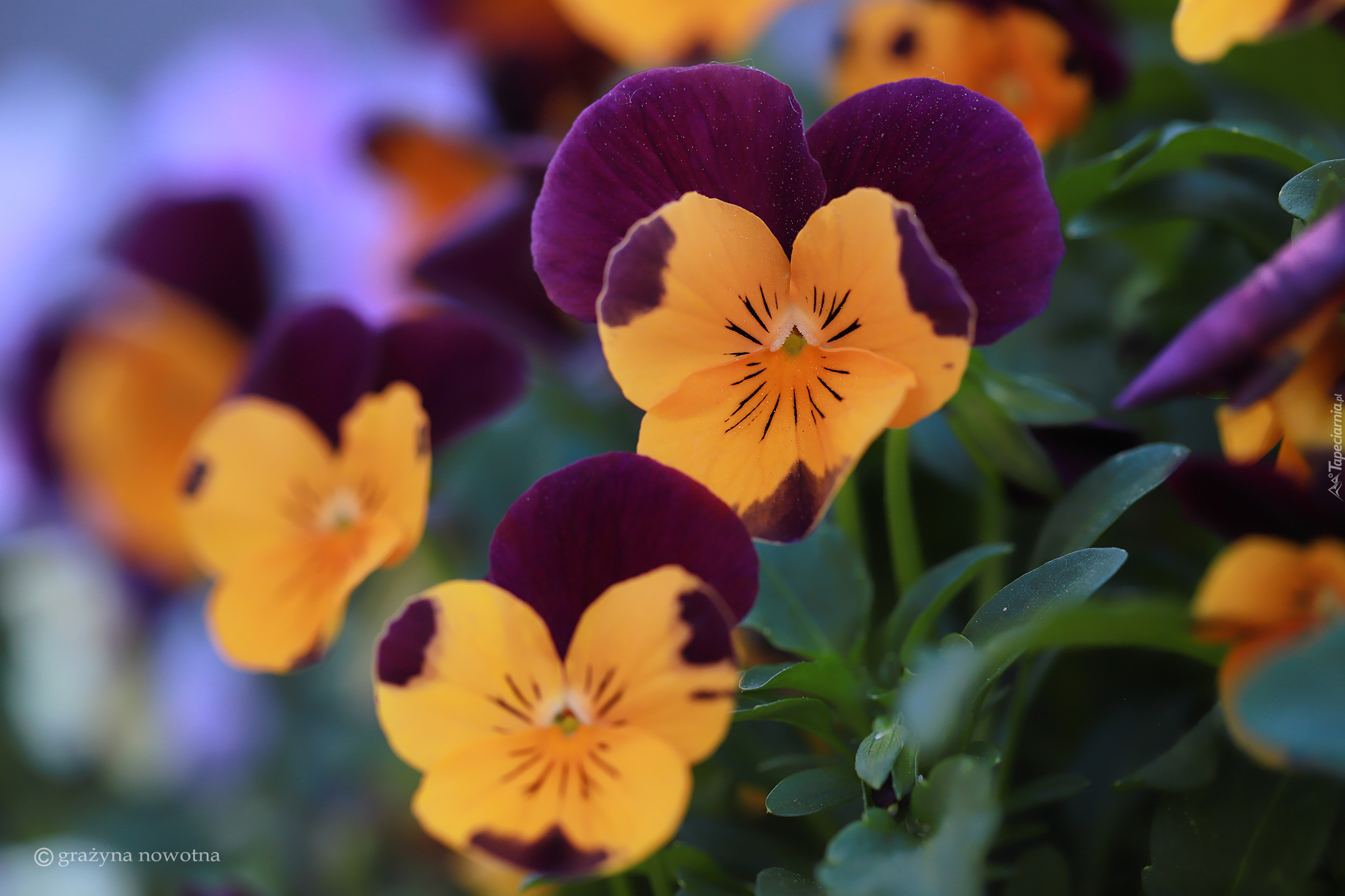Edytor tapety: Kolorowe bratki na rozmytym tle